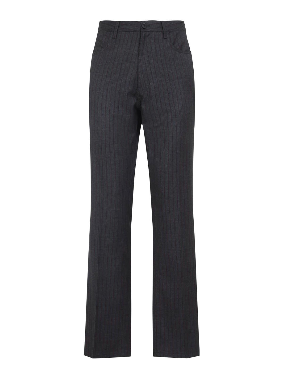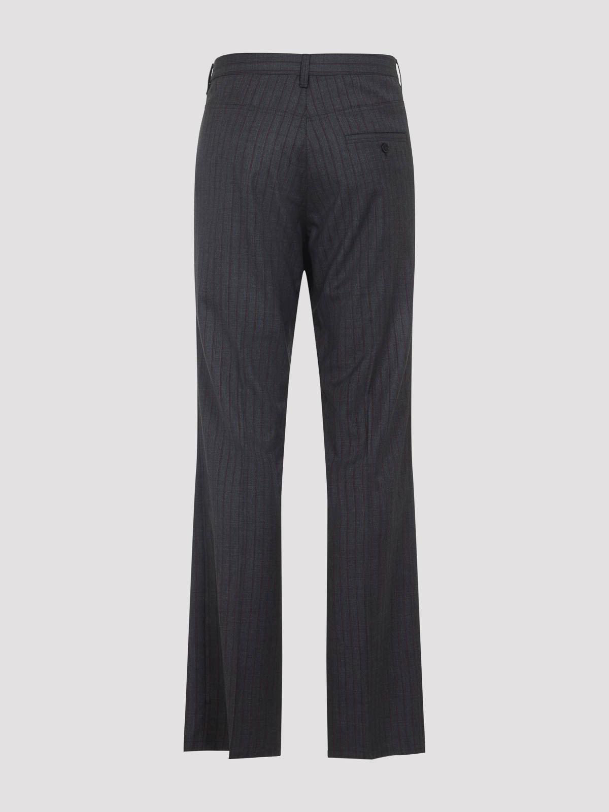 Balenciaga gray wool tailored pants. gray wool, pinstripe red pattern, high waist, concealed front fastening, belt loops. straight legs, regular fit.