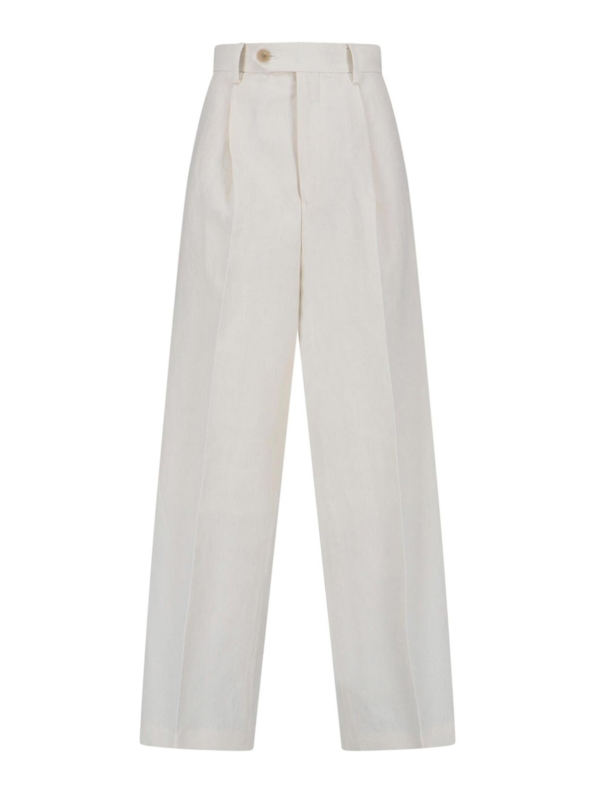 Aurale tailored trousers in white wool blend, high waist, zip and button closure, side pockets, front pleats, two back welt pockets, wide leg.