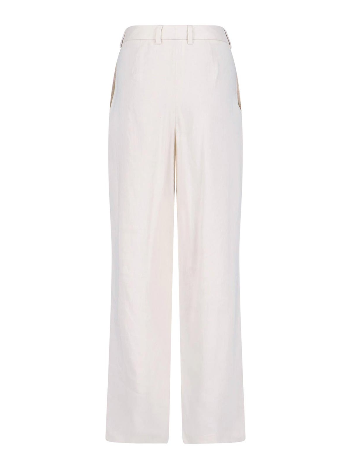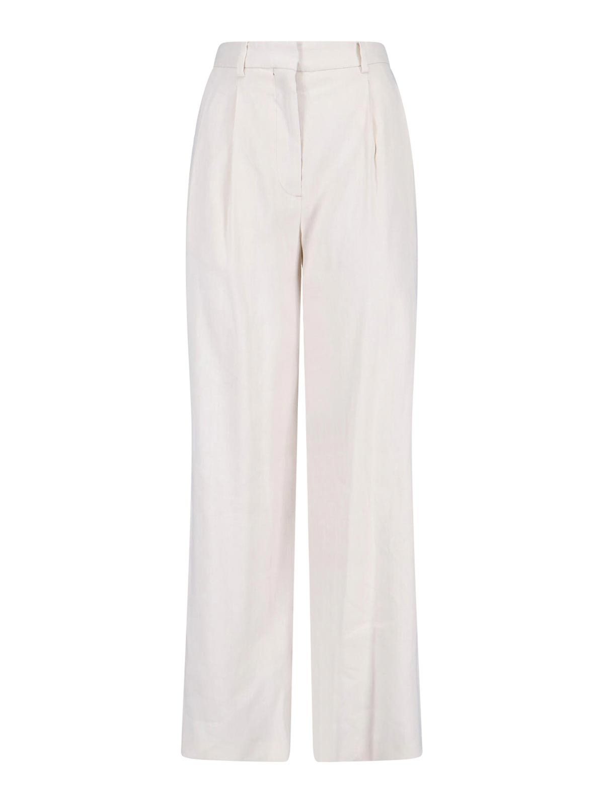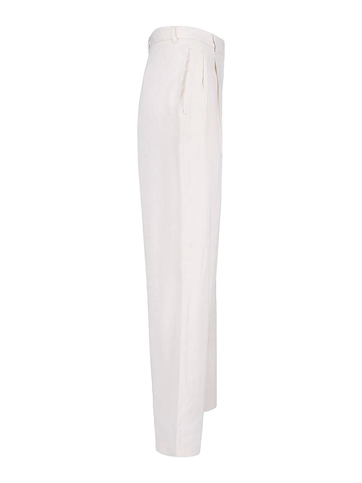 Lardini tailored trousers in white linen and viscose blend, medium waist, hook and zip closure, belt loops, two side pockets, front pleats, straight leg.