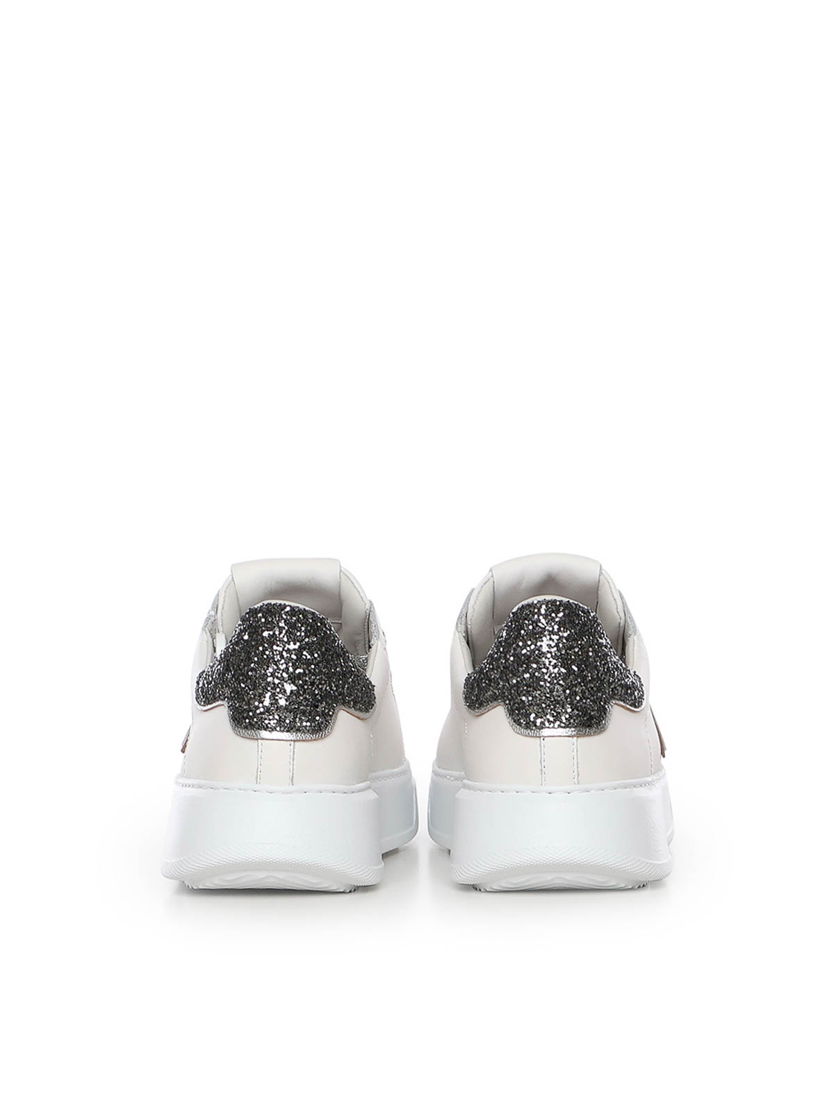 calfskin upper, lace-up closure, glitter spoiler, round toe, rubber sole, leather and cotton terry lining, logo details made in italy, color: white, black