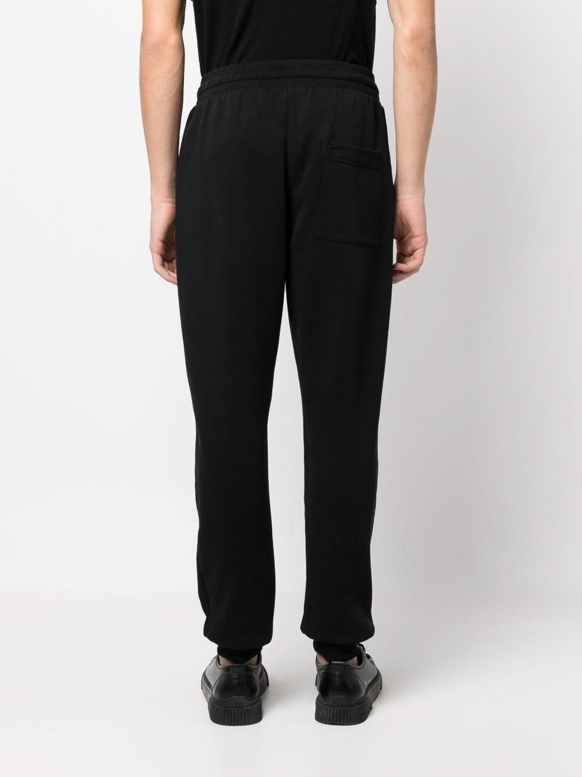 Tennis club icon embroidered track pants from casablanca featuring black, organic cotton, embroidered logo at the leg, elasticated drawstring waistband, two side slit pockets, rear patch pocket and elasticated ankles.