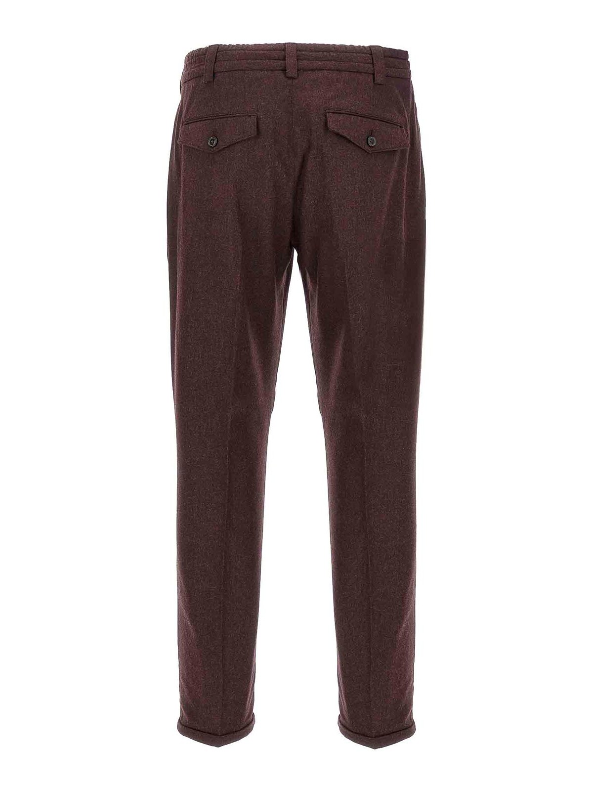the rebel' cool wool pants, elastic waistband, button closure, pockets, straight leg, stretched pleat, turn-up hem.