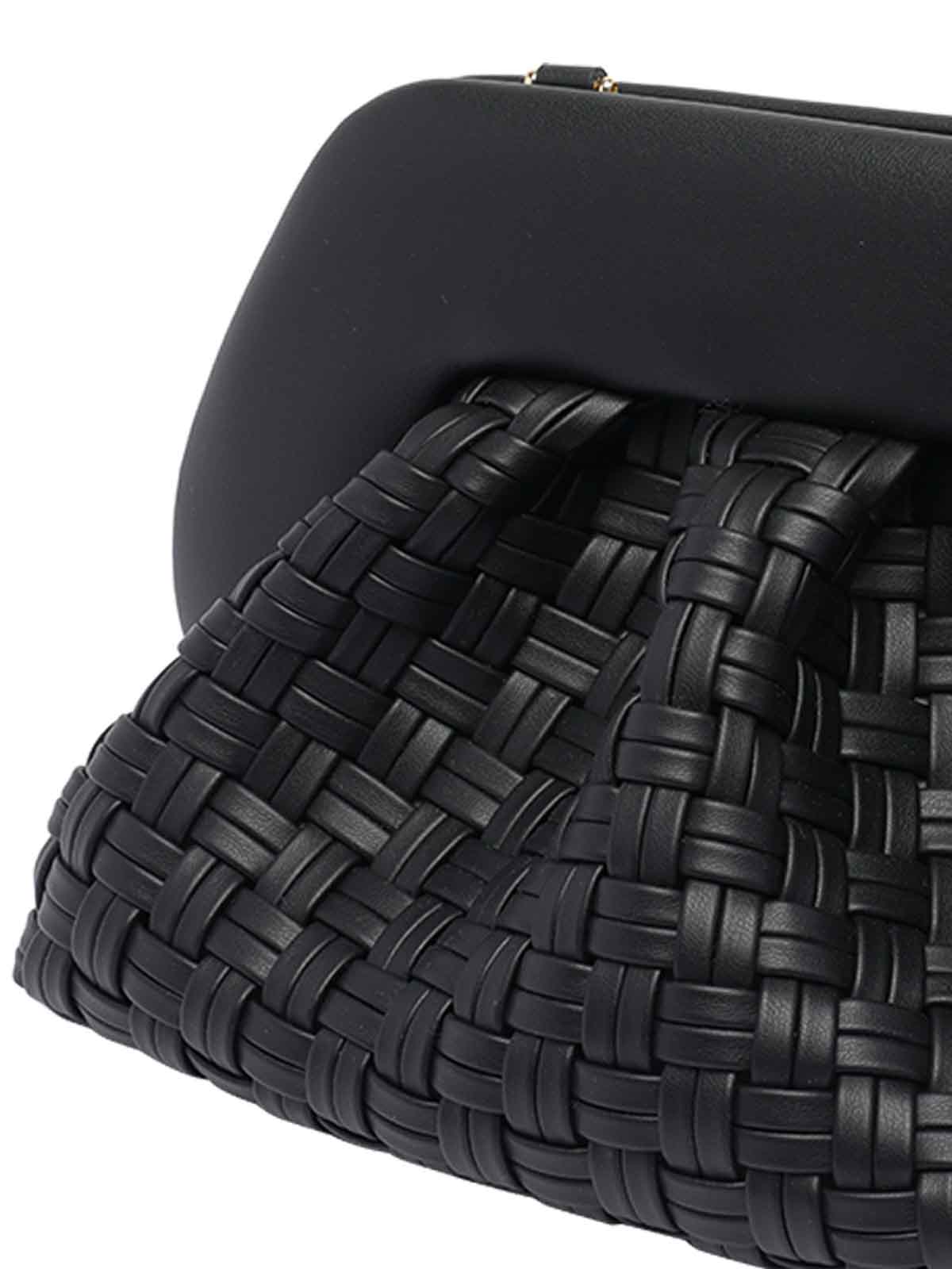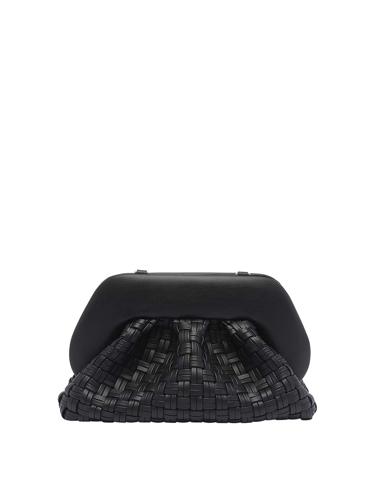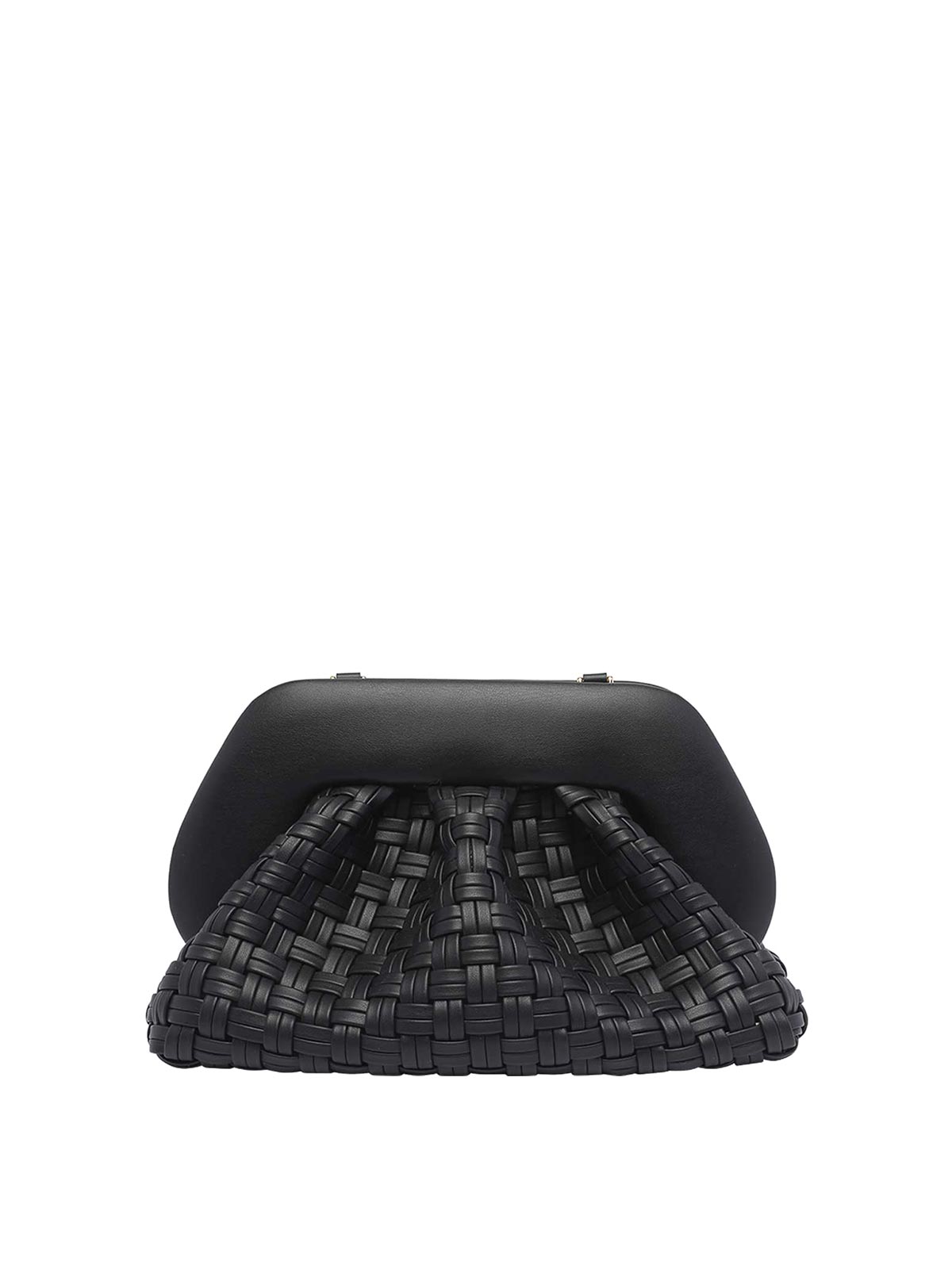 Themoire' black tia clutch, magnetic closure, adaptable and removable strap