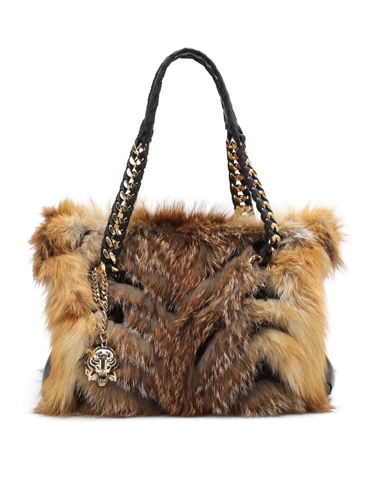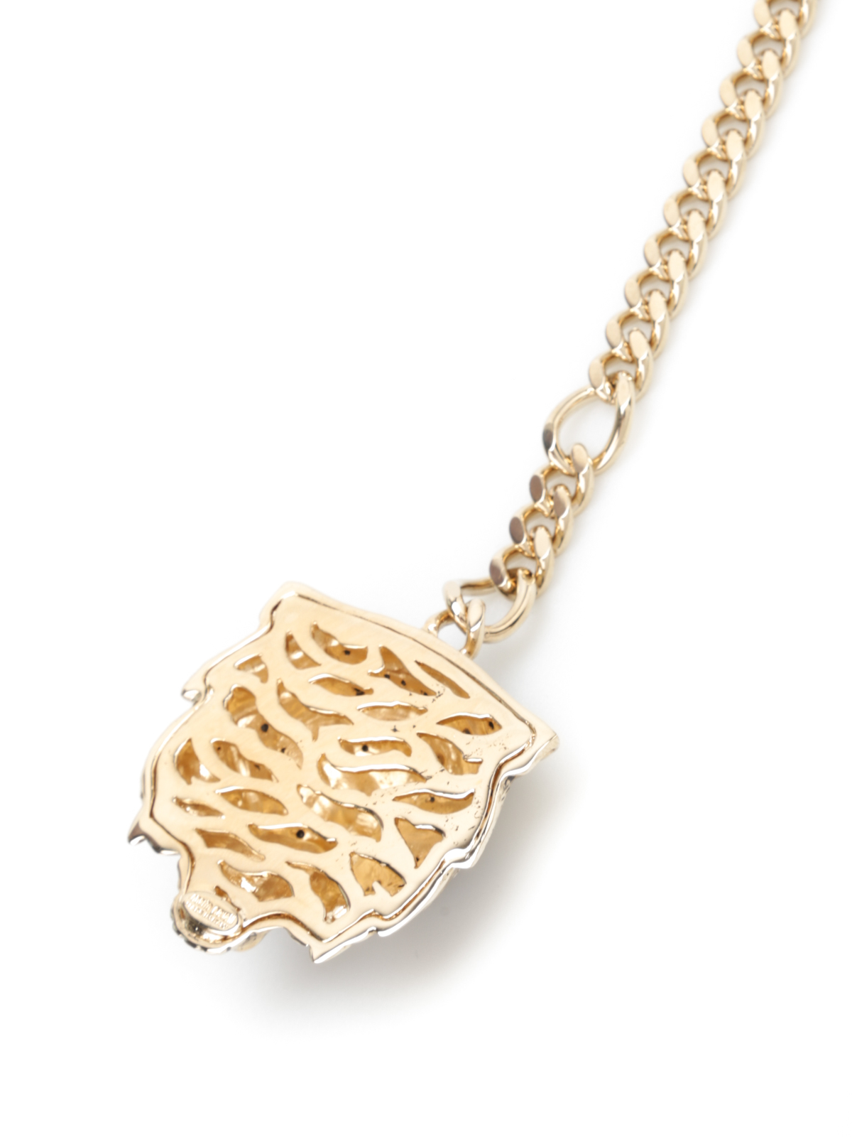 Gold-tone tiger charm detailed with contrasting Swarovski crystal applications and chain strap.
