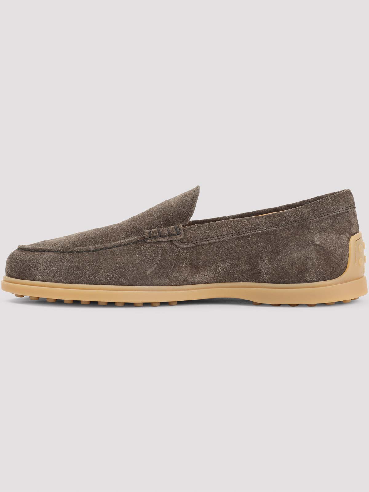 Tod`s brown suede leather loafers. crafted from brown suede leather, round toe, embossed logo on the front, branded rubber pebble insert on the back, leather lining and insole, rubber pebble outsole.