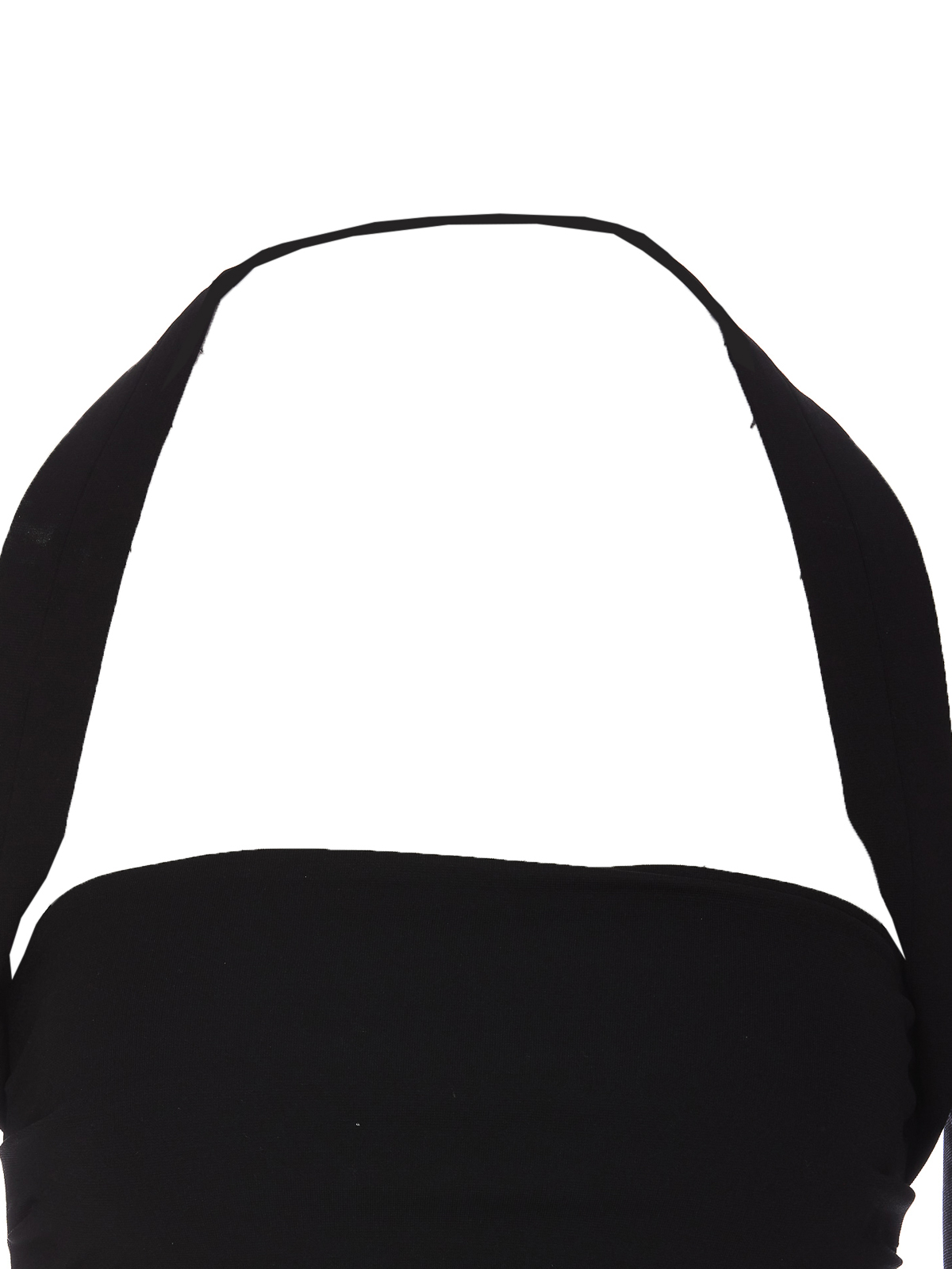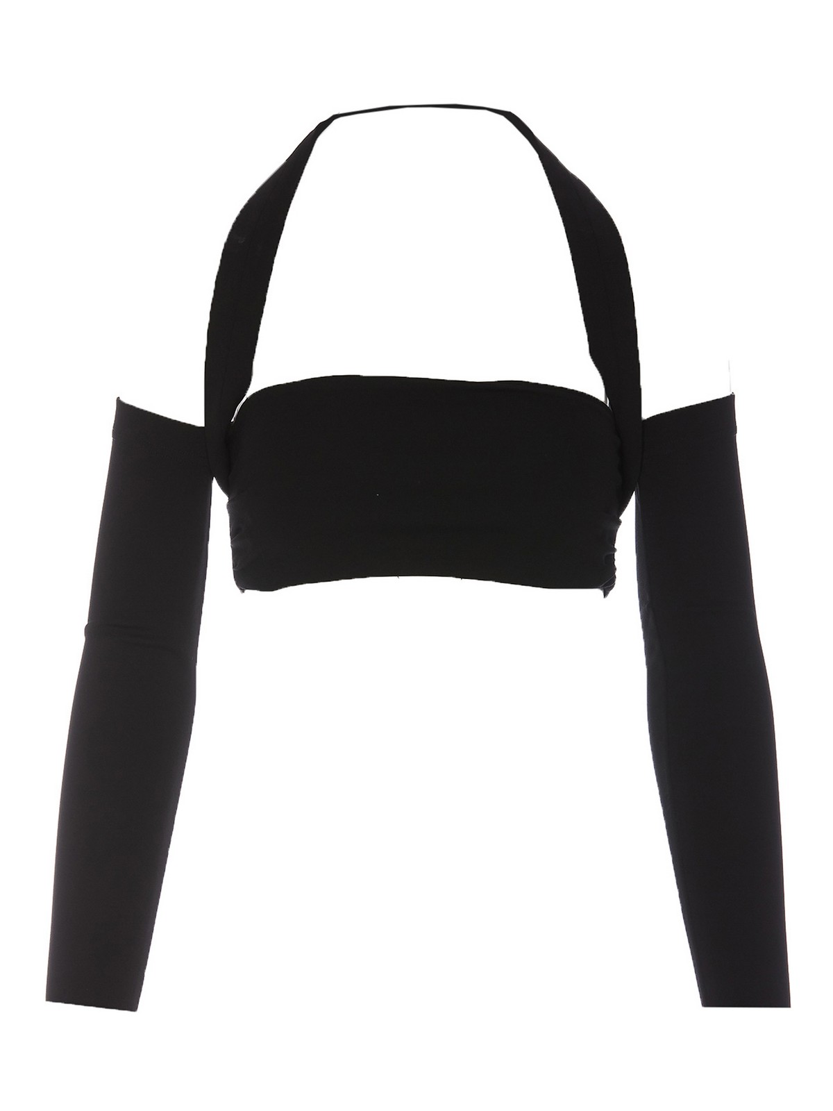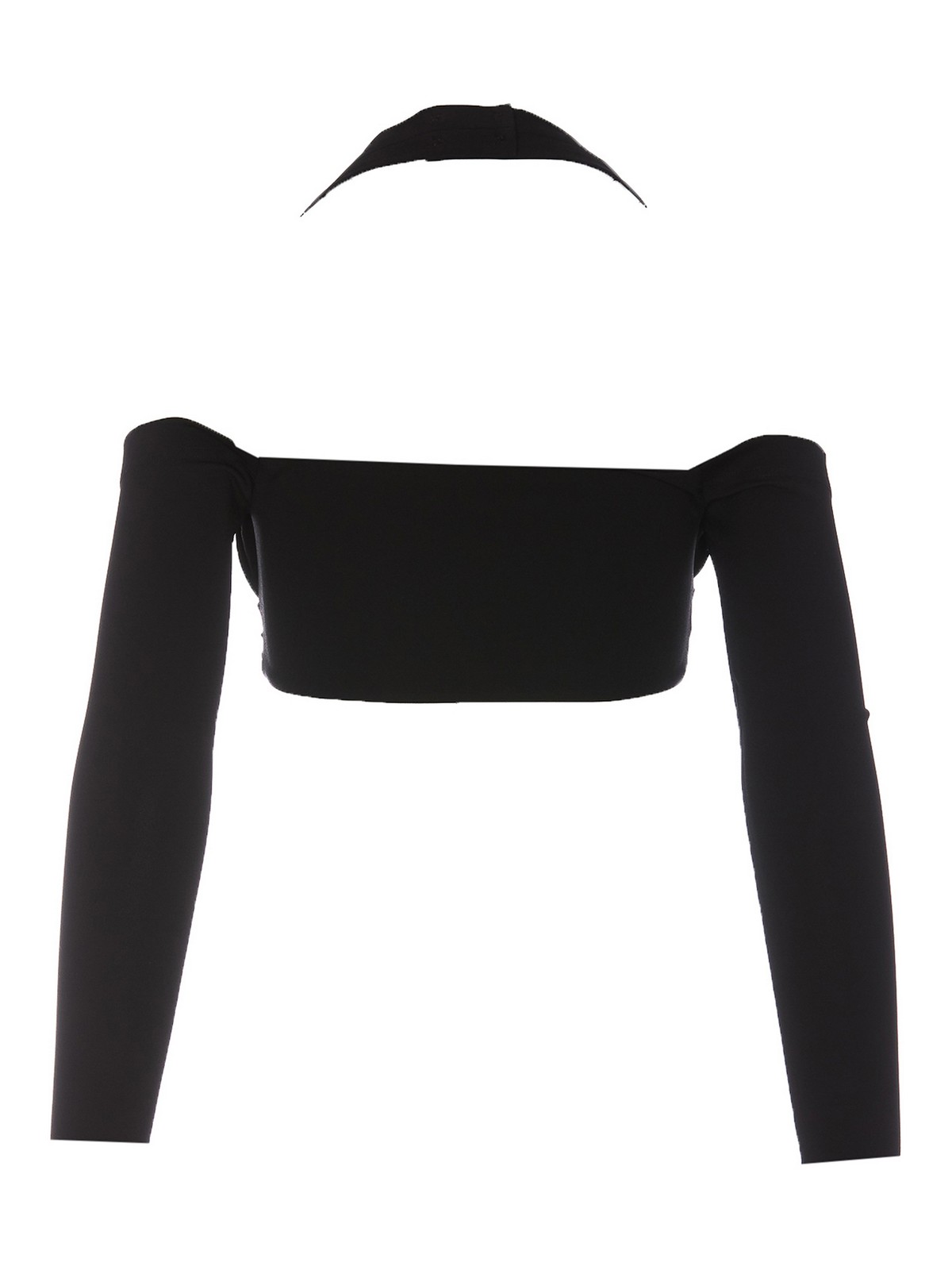 Dolce gabbana black top elasticized model cut out detail sleeves detail boat neck buttons closure