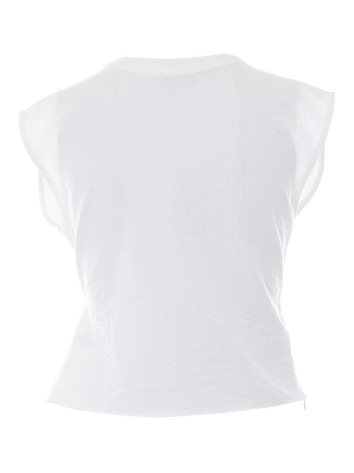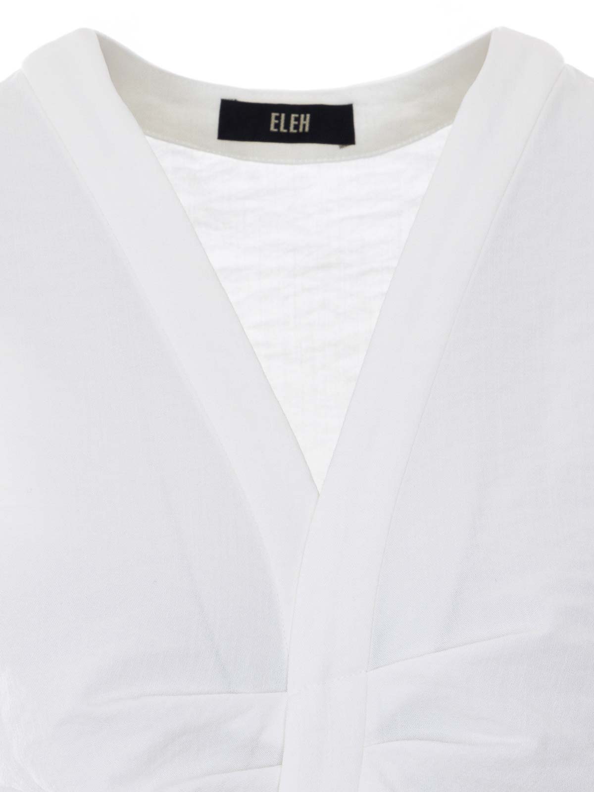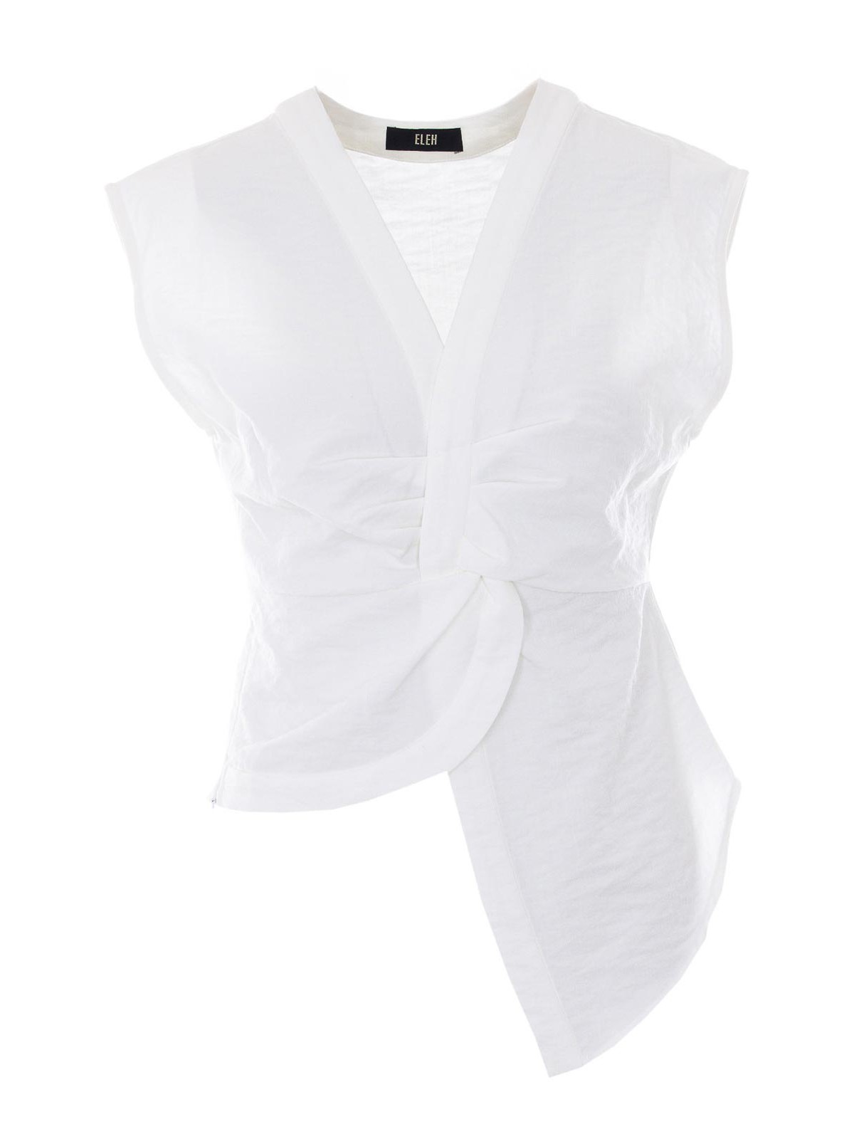Eleh white top,v nec,asymmetric, draped detail on front, sleeveless