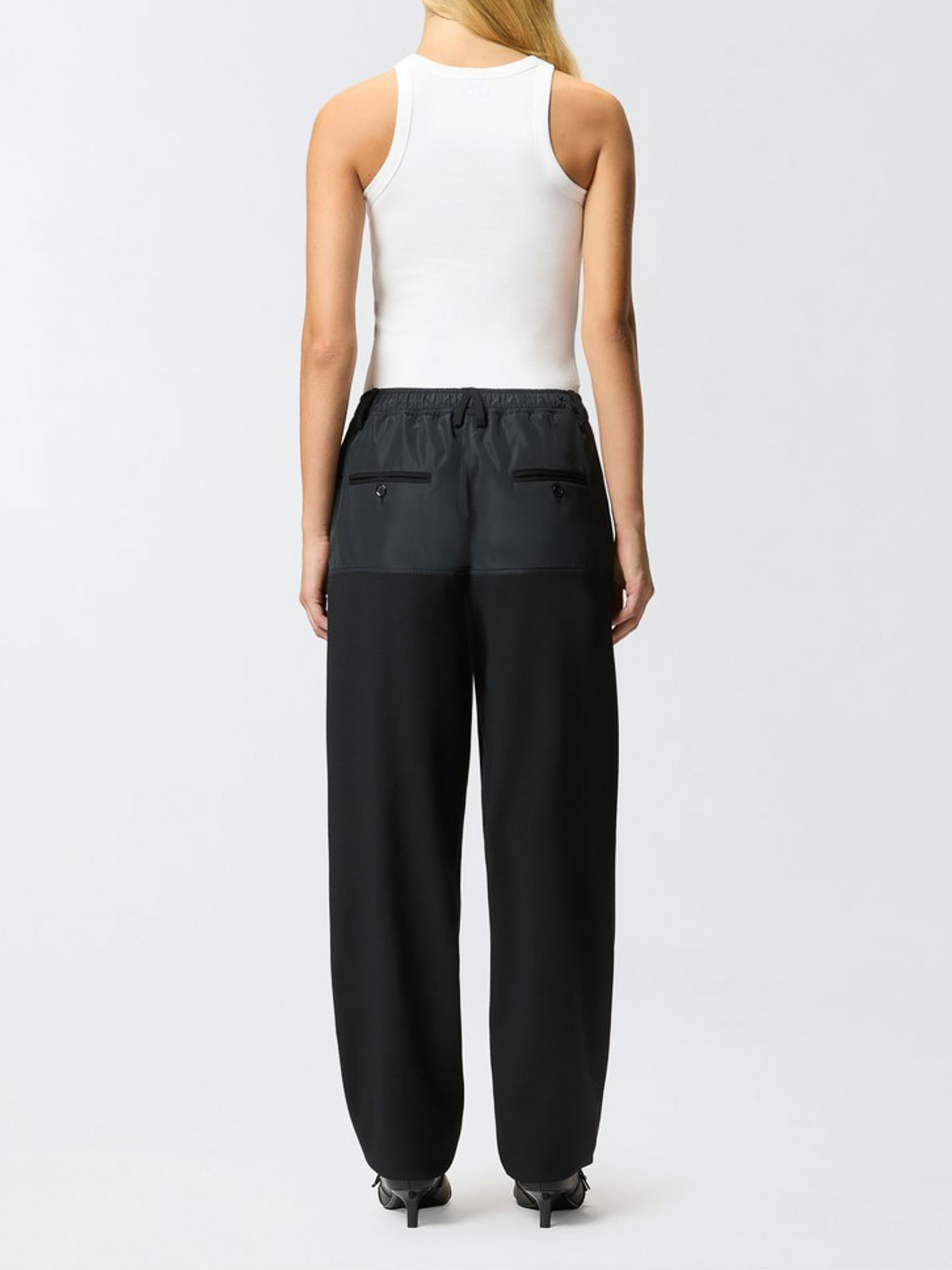 Pinko strappy top with rhinestones and studs, featuring a racer neckline, made from ribbed cotton blend and decorated with a pattern of mini round studs and rhomboid rhinestones on the front.