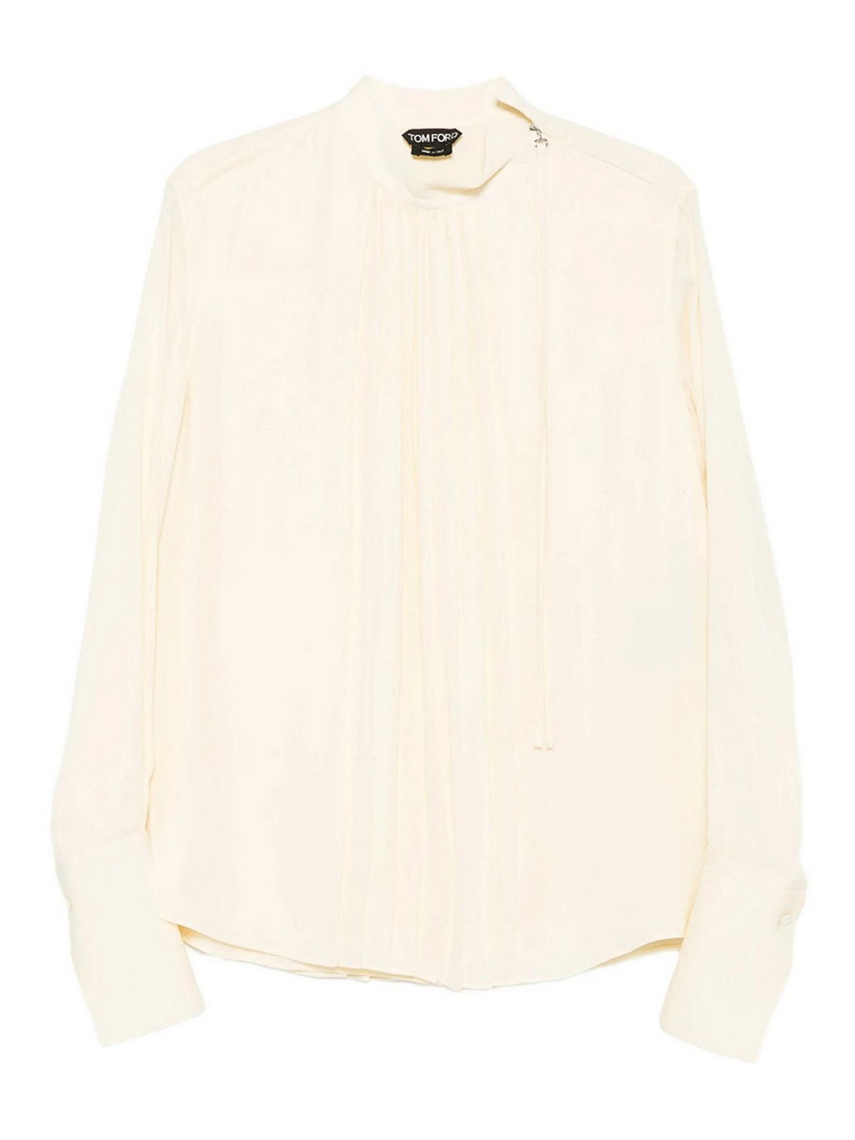 Off-white high neck pleated front long sleeves buttoned cuffs