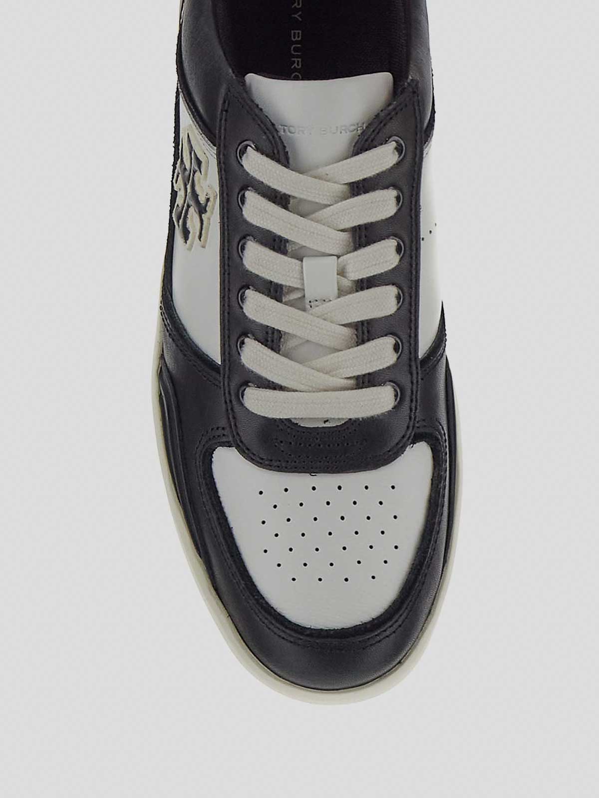 Tory burch low-top sneakers in black / purity white with embossed logo