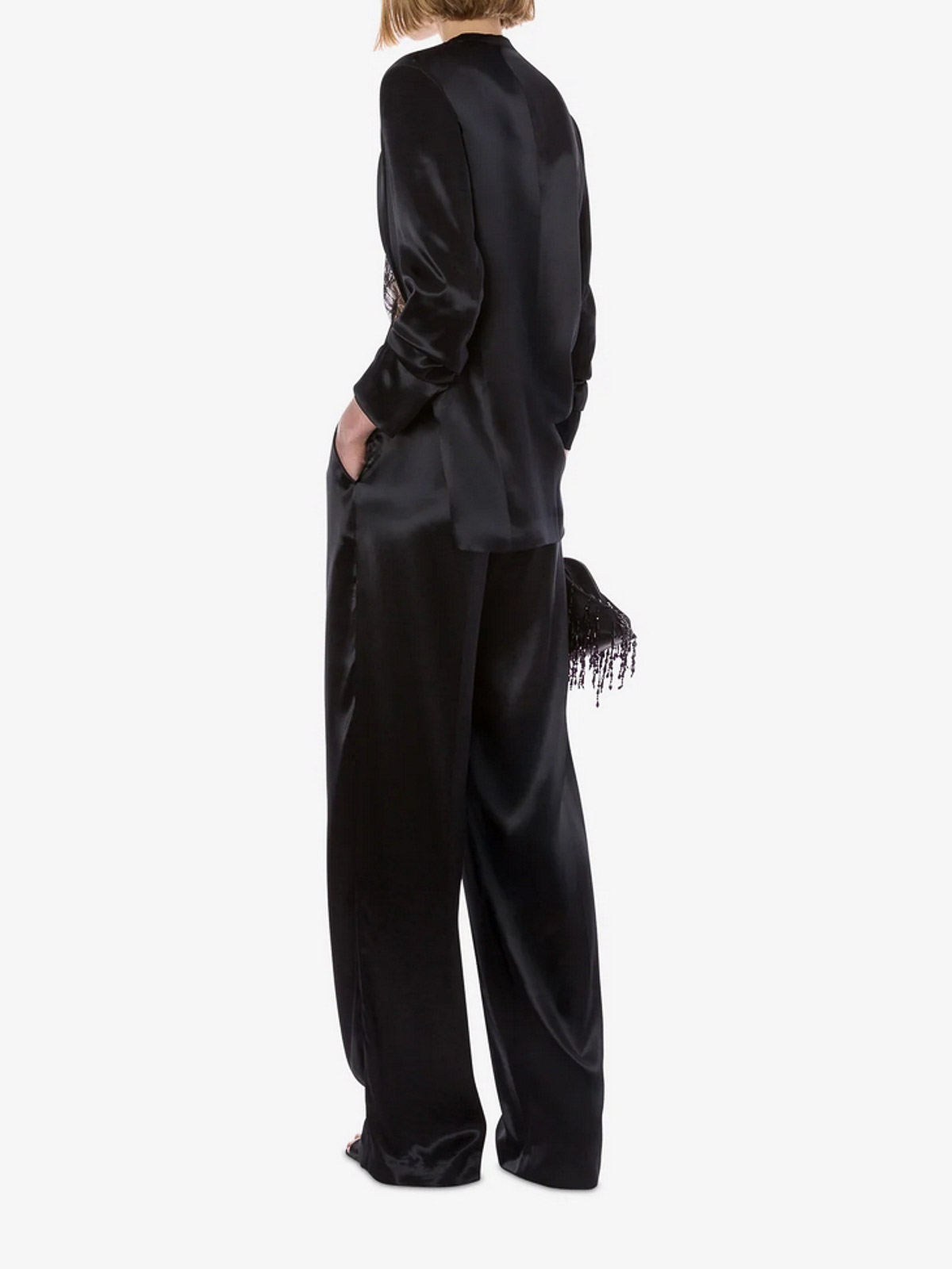 Shiny satin alberta ferretti trousers with side pockets, slight front pleats and concealed front zip fastening. regular fit.