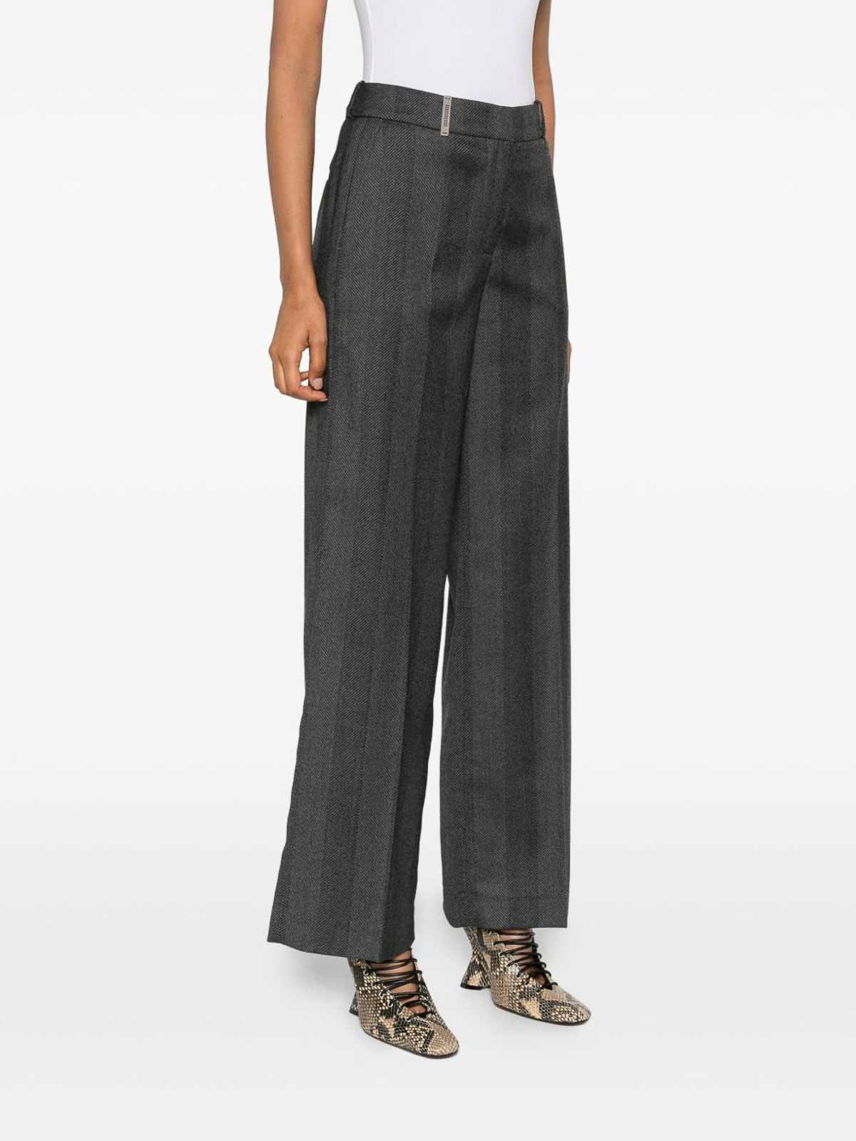 Grey herringbone pattern wide leg pleats straight hem zip fly