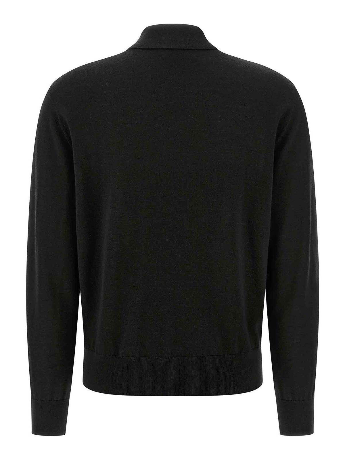 tuno' polo shirt in light merino wool with collar and buttons, long cuffed sleeves.