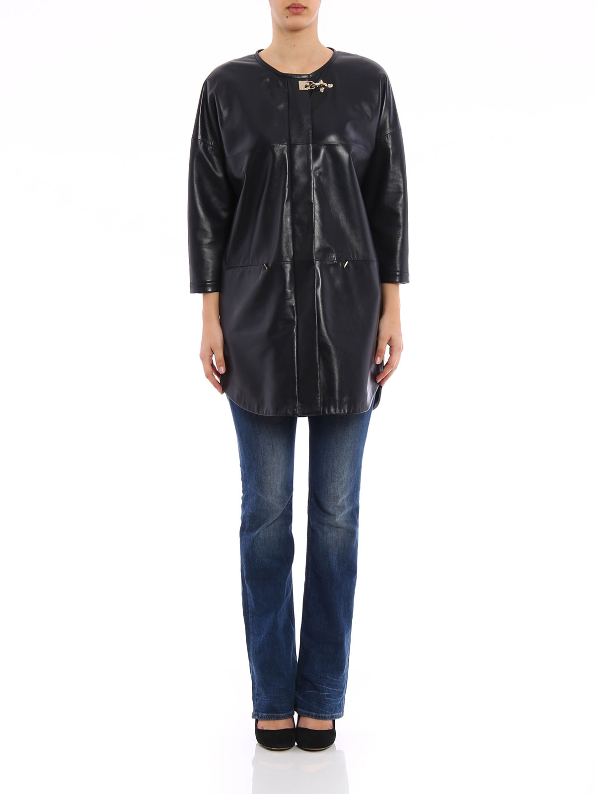 FAY: leather coats - Unlined leather overcoat