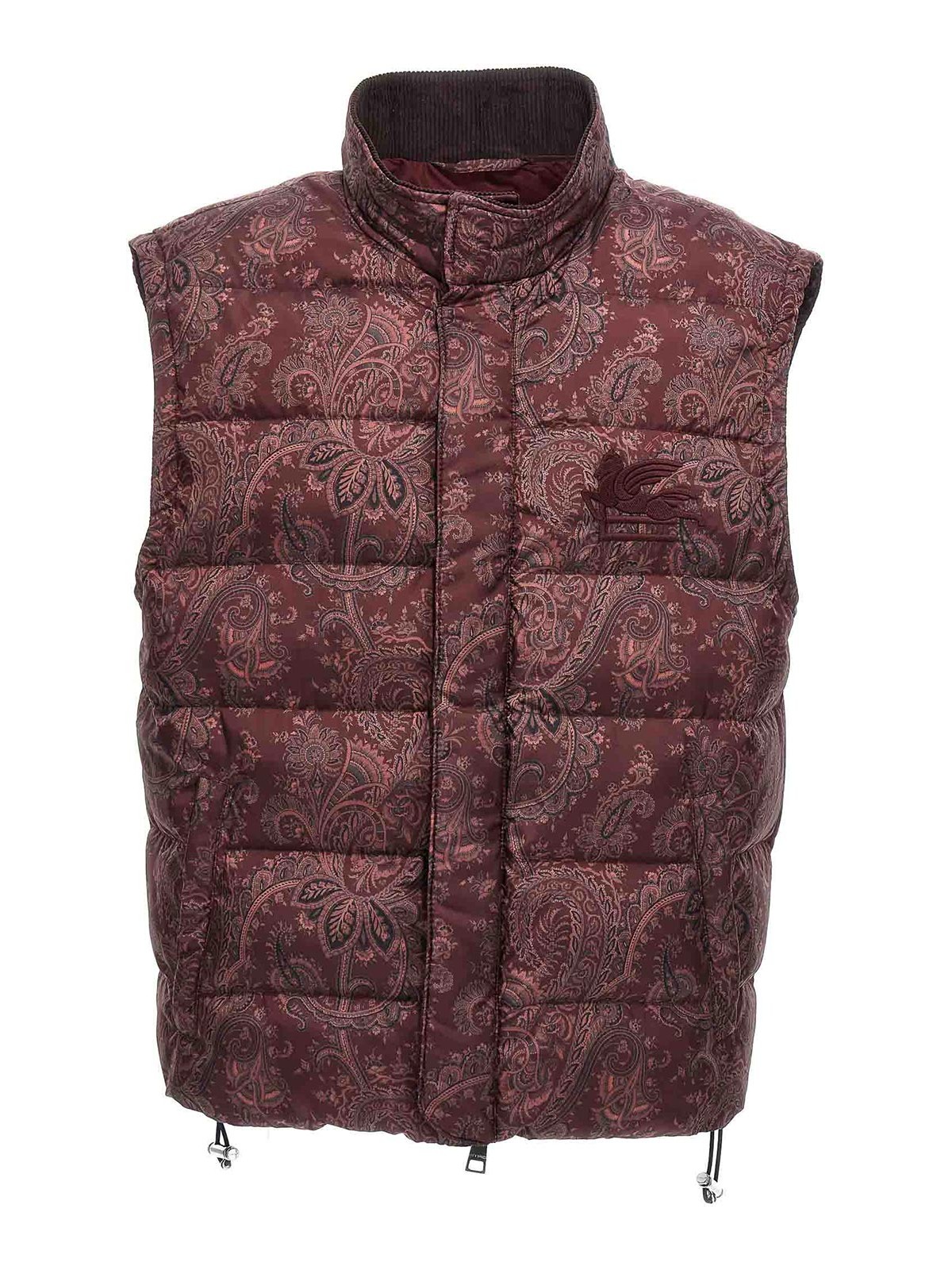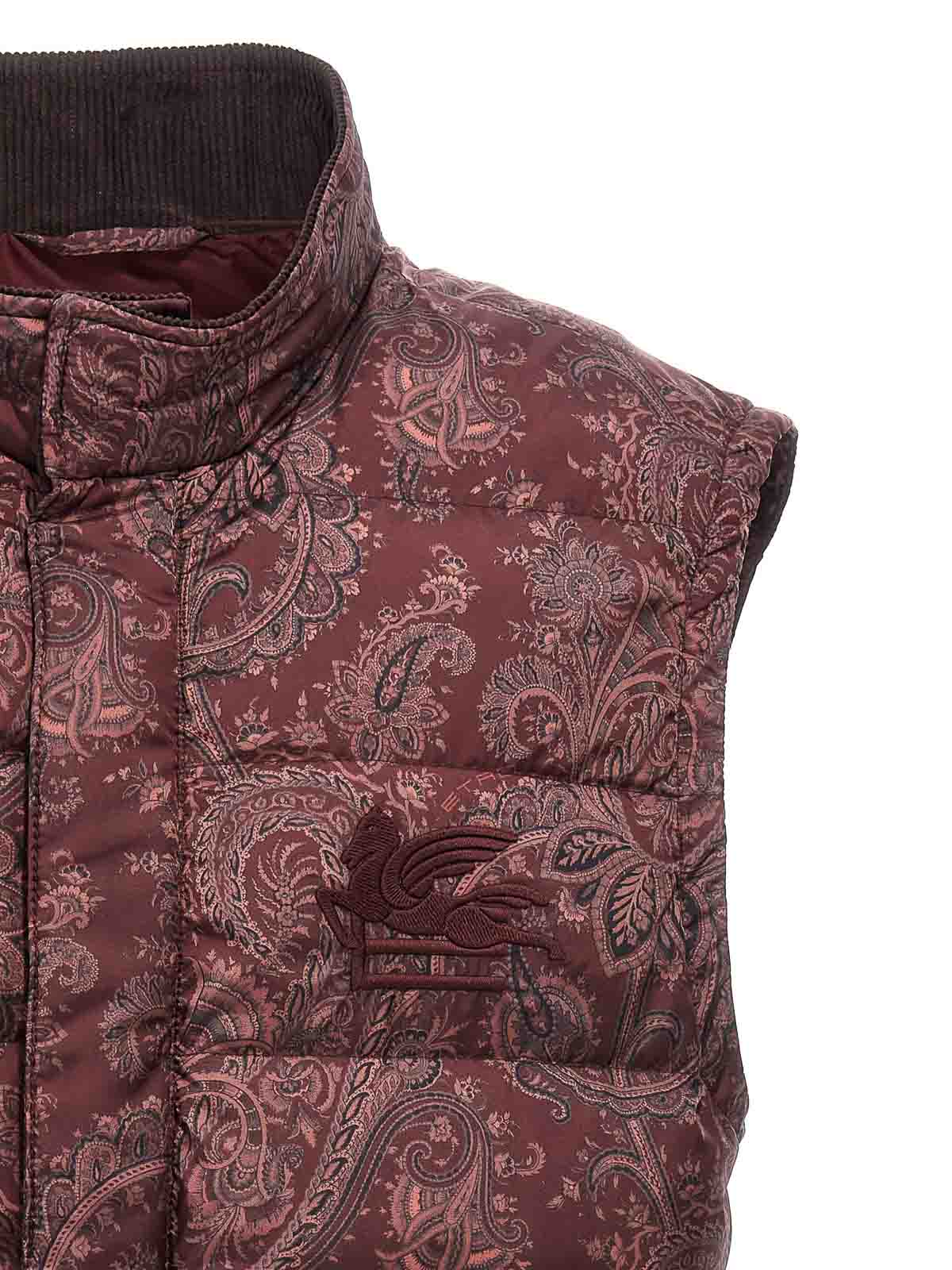Nylon vest with all-over 'paisley' print logo zip and button pockets adjustable drawstring on the bottom of the garment
