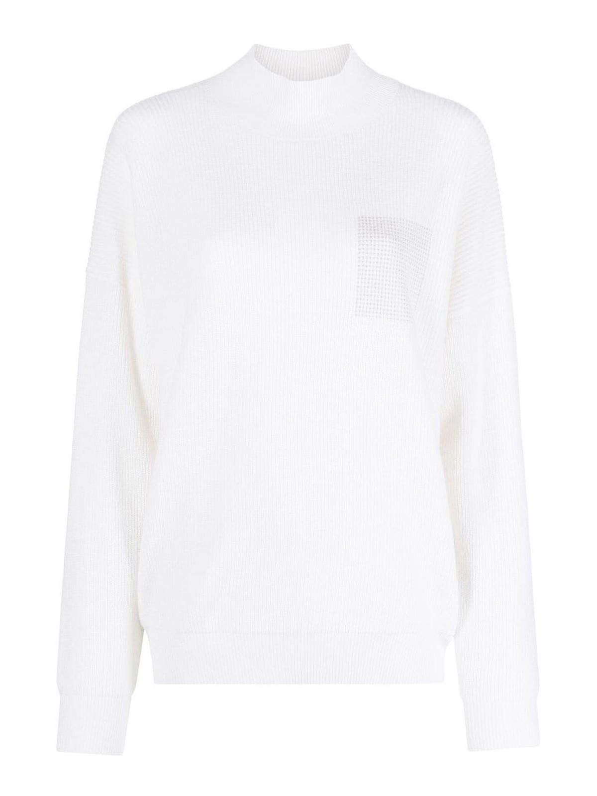 Waffle-knit high-neck jumper from peserico featuring optical white virgin wool-silk blend waffle knit metallic threading high neck drop shoulder long sleeves and ribbed cuffs and hem
