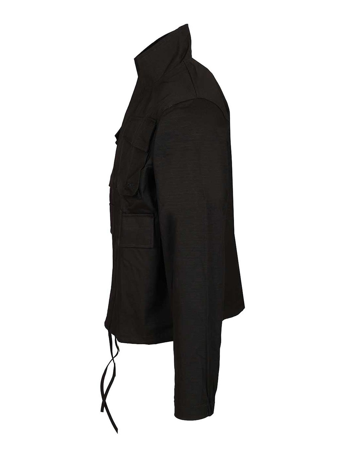 Waxed ripstop jacket from arte, with tone-on-tone metal arte logo on the front left chest pocket, clean lines, high collar and functional pockets, hidden zip fastening and adjustable hem.