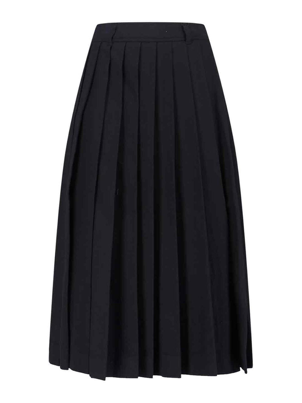 Dunst wool blend midi skirt, black, pleated design, high waist, belt loops, side zip closure, straight hem.