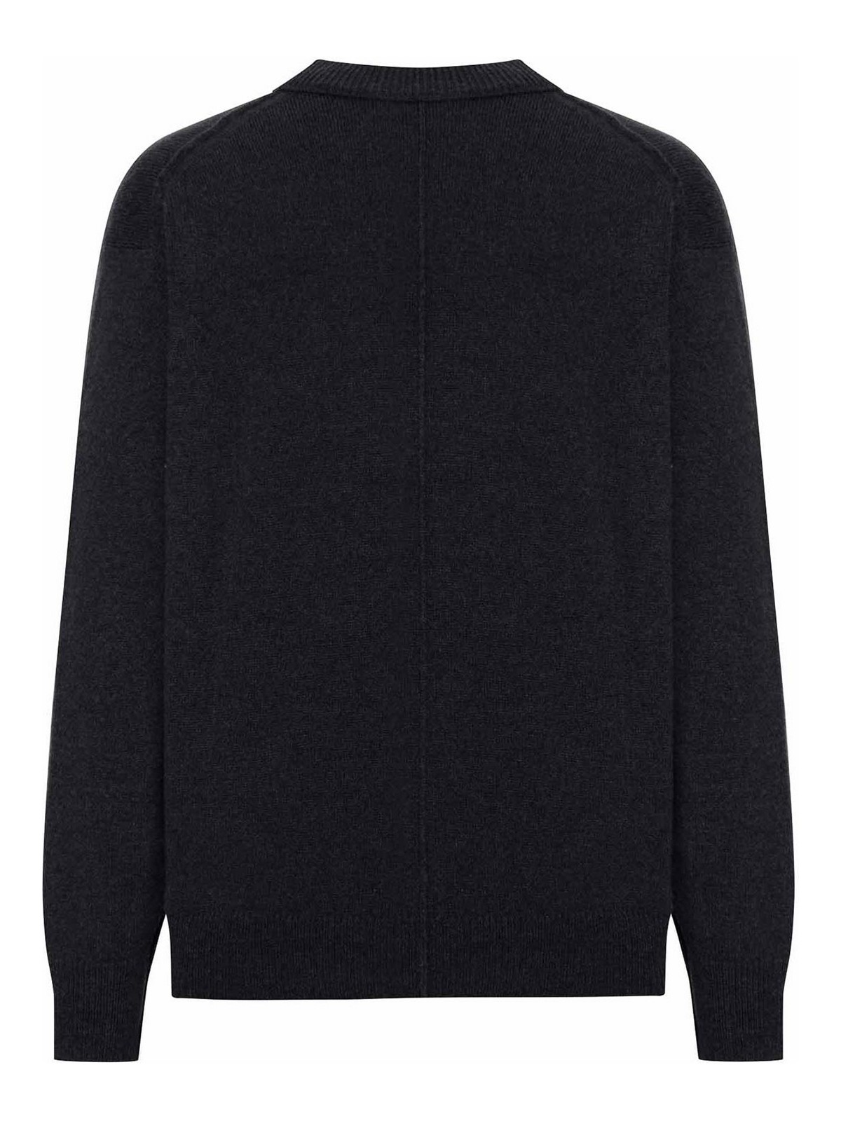 Center placket with tone-on-tone buttons- dropped armholes- long sleeves- elasticated ribbed cuffs and hem- two patch pockets with contrasting stitching- relaxed fit- color black