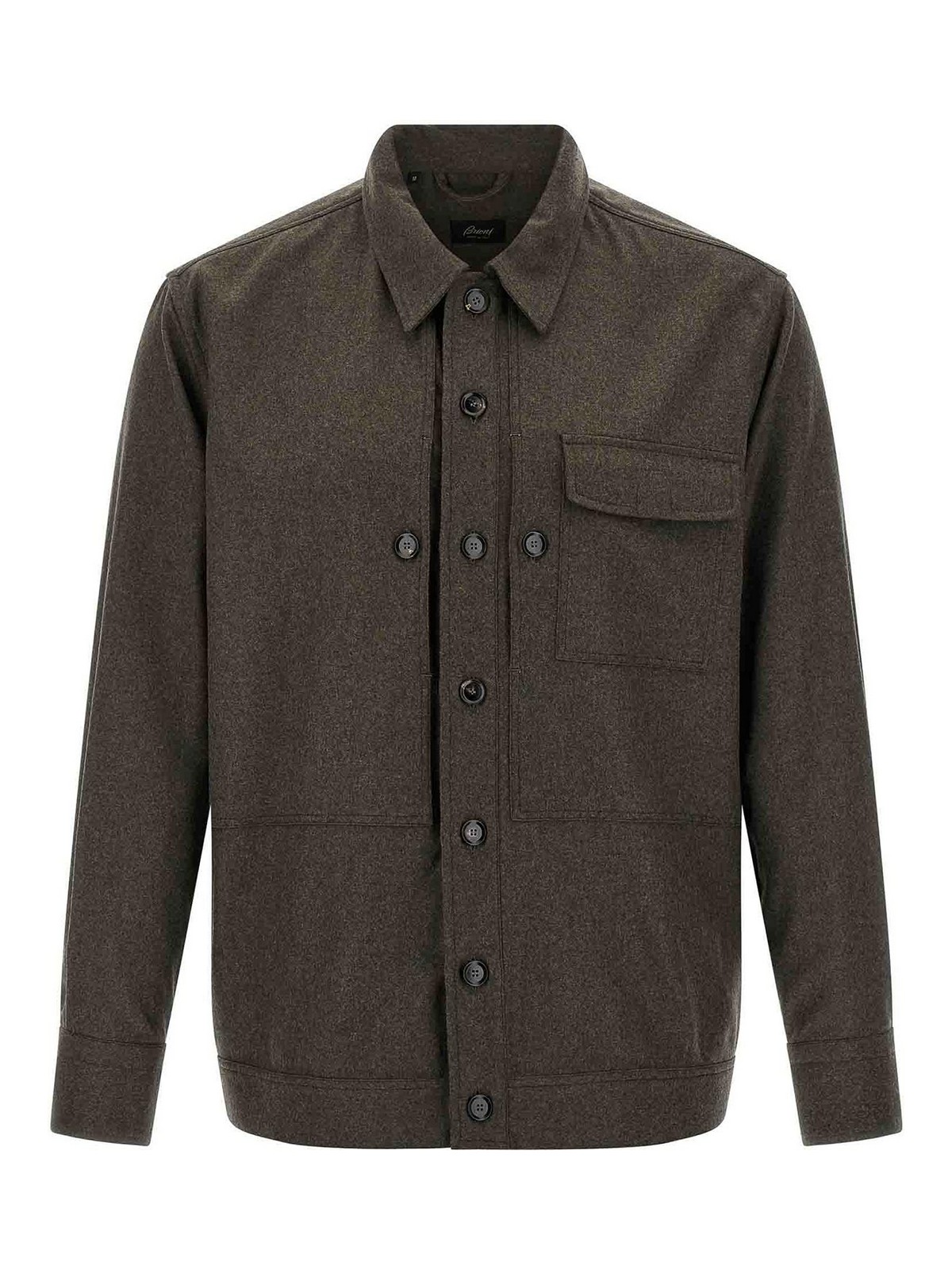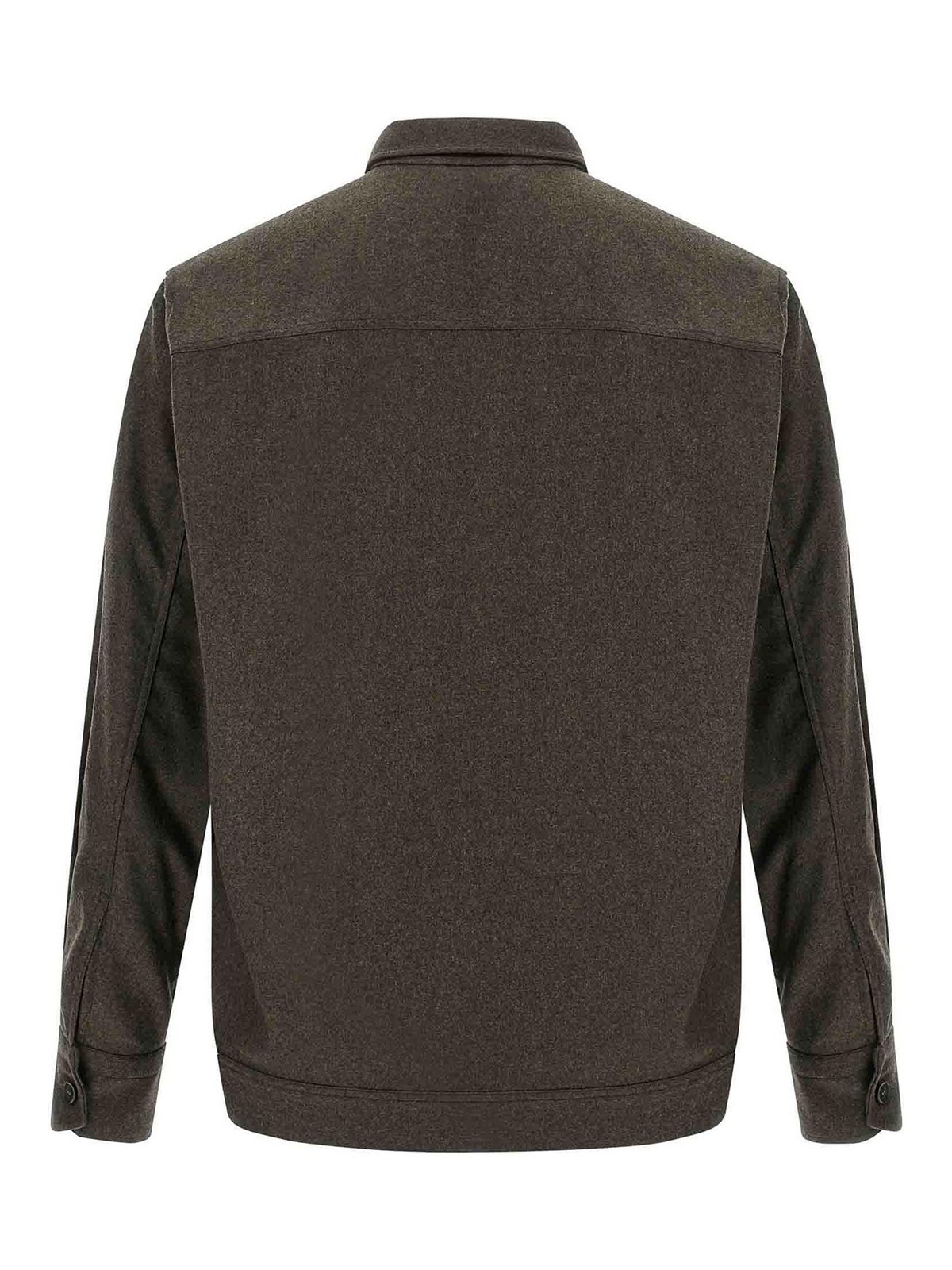 Wool cloth overshirt with button pockets long cuffed sleeves unlined
