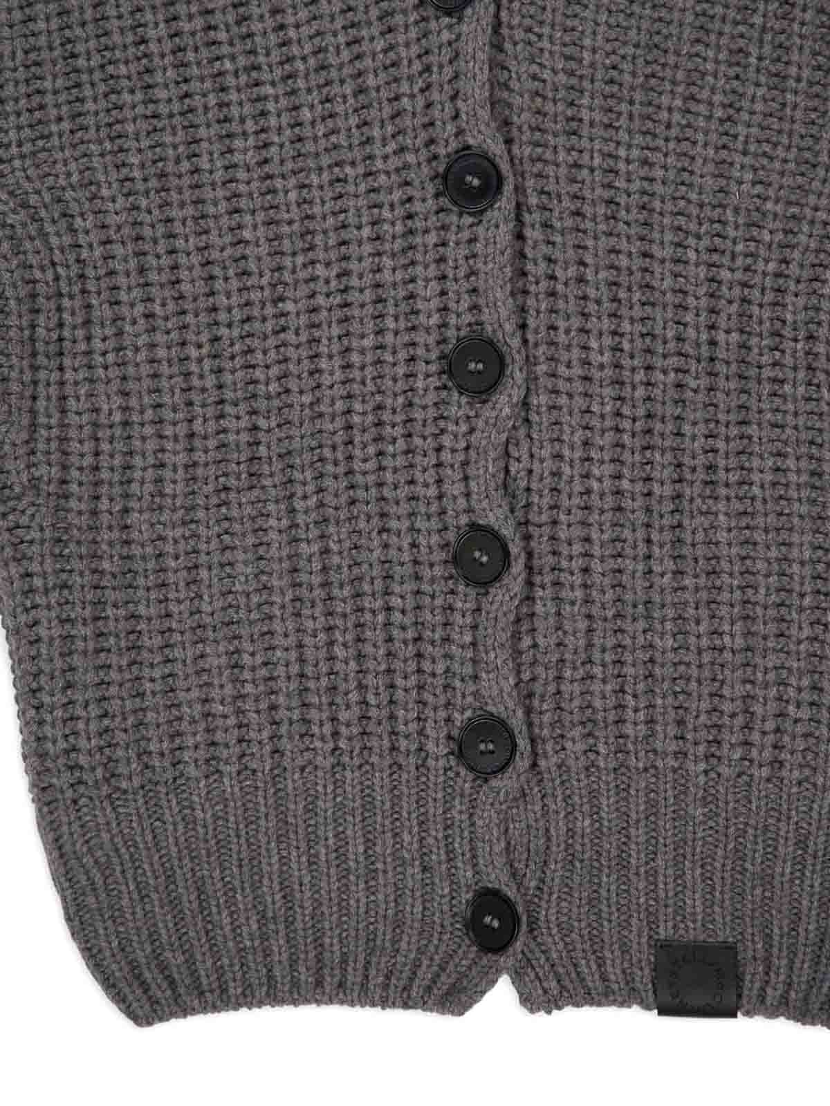 Dark grey ribbed knit hooded neckline button fastening cashmere wool blend