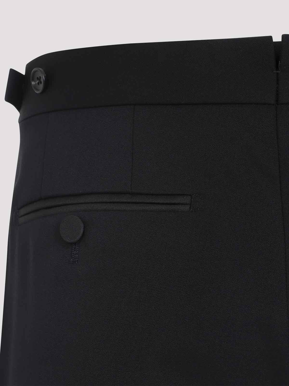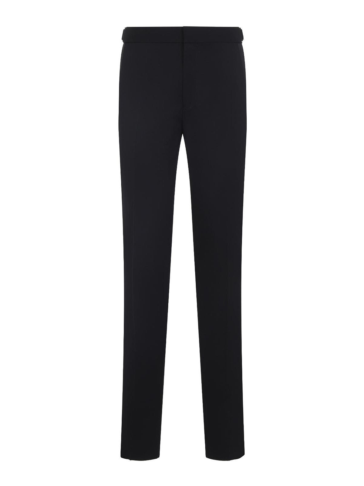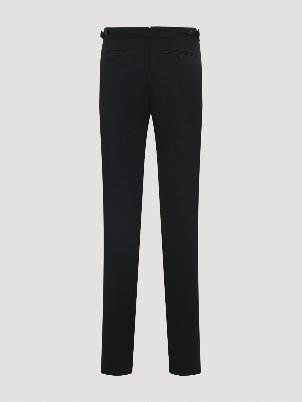 Tom ford black pants crafted from black regular waist adjustable waist concealed tonal stripes along the leg slant pockets back pockets straight leg