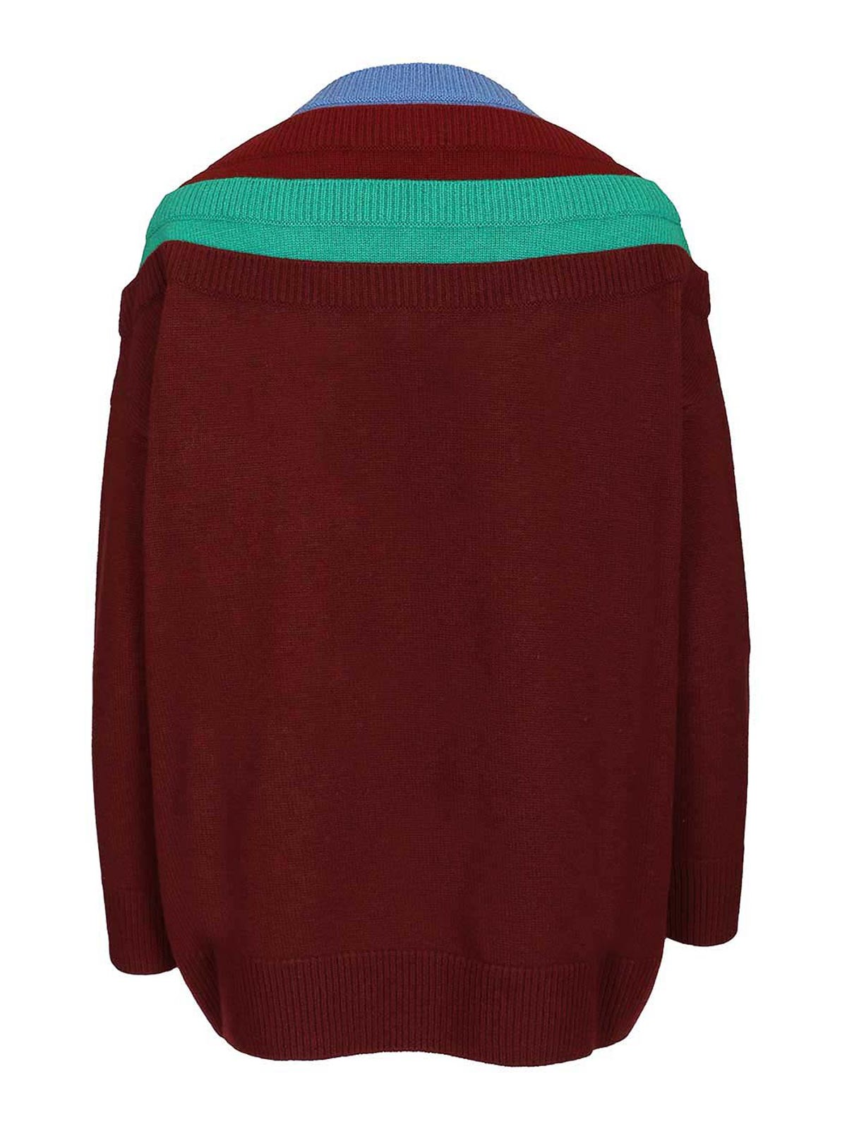 Wool sweater by loewe with trompe l'oeil layered construction v, neck ribbed collar cuffs and hem tab with embossed anagram motif on the side