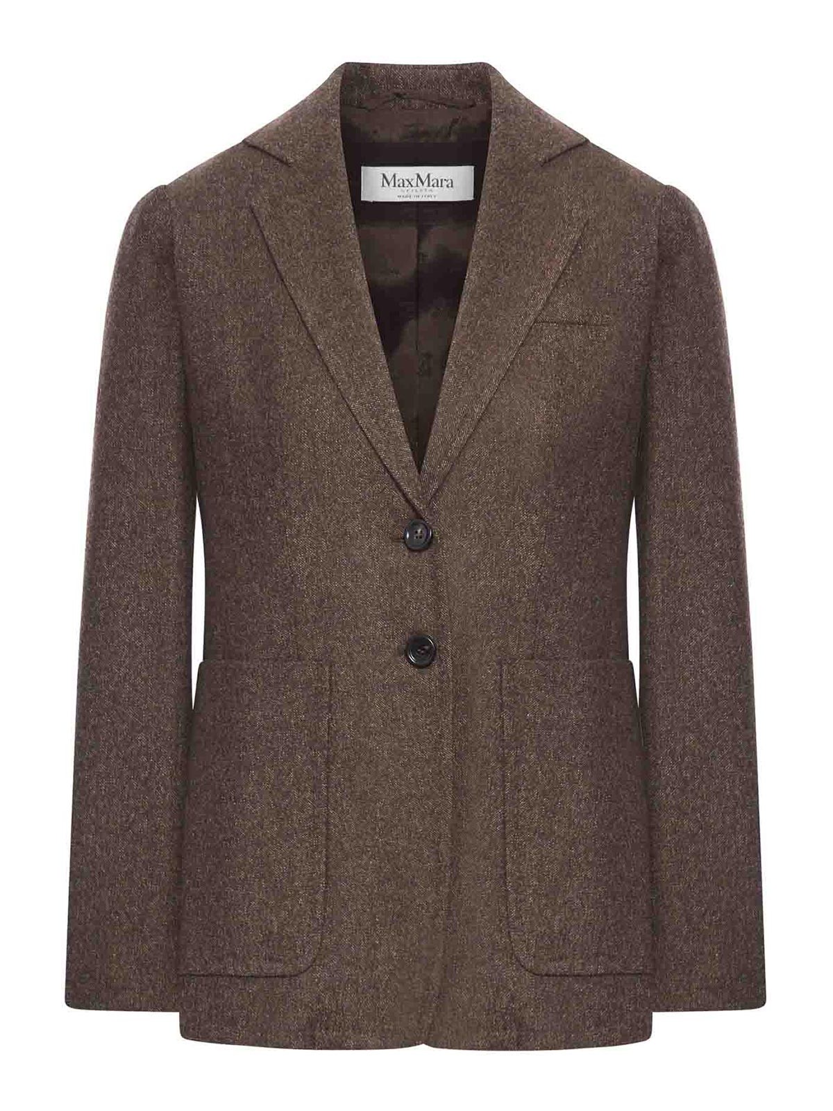 Pure tweed jacket, lapel collar, set, in sleeves with buttoned cuffs, two, button, chest pocket, patch pockets, sewn darts at the waist, side slits at the back, lined, color brown