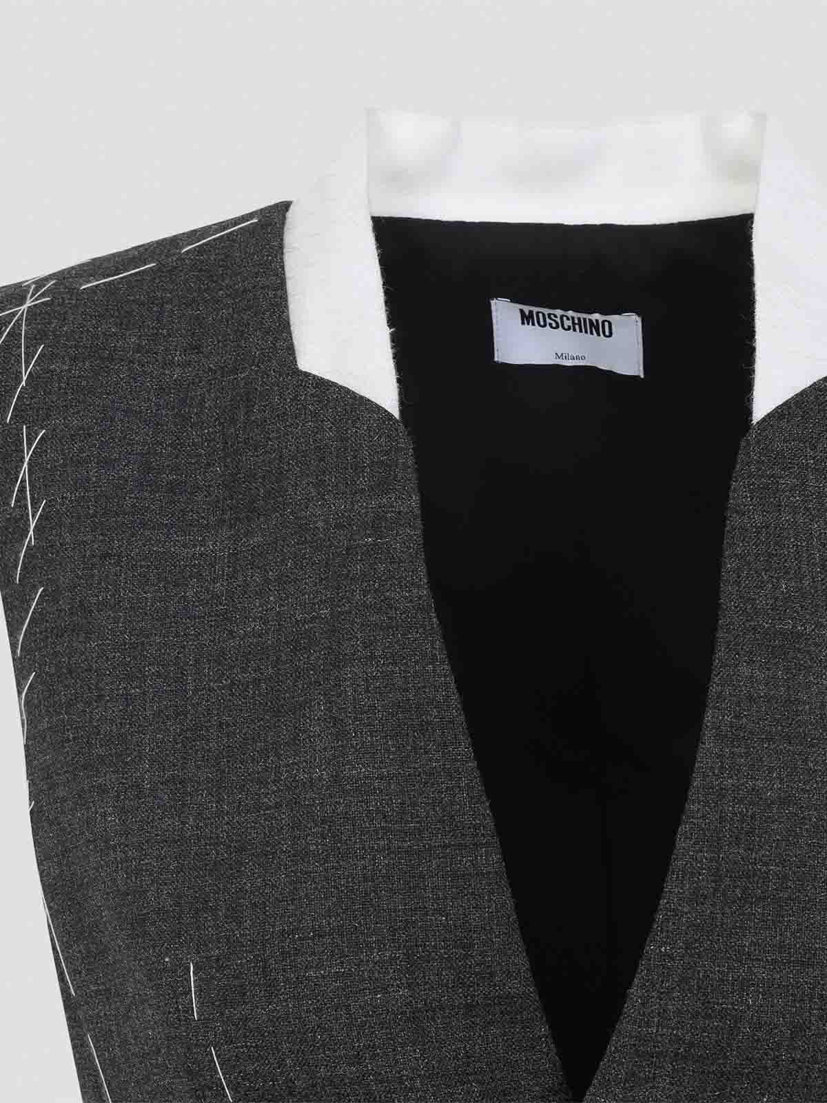 Moschino grey vest pure grey vest stand, up collar with white buttoned side flap pockets white on the shoulders sleeveless round hem contrasting white stitching