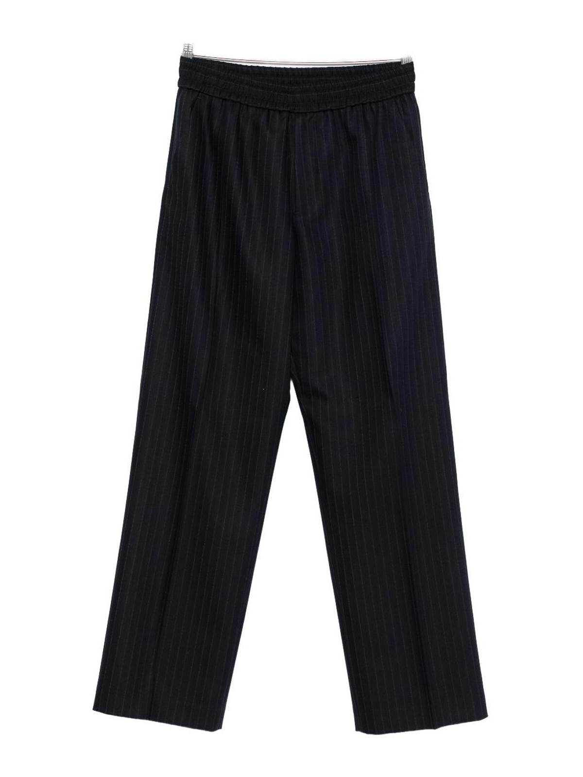 Navy blue pinstripe pattern elasticated waistband straight leg mid-rise