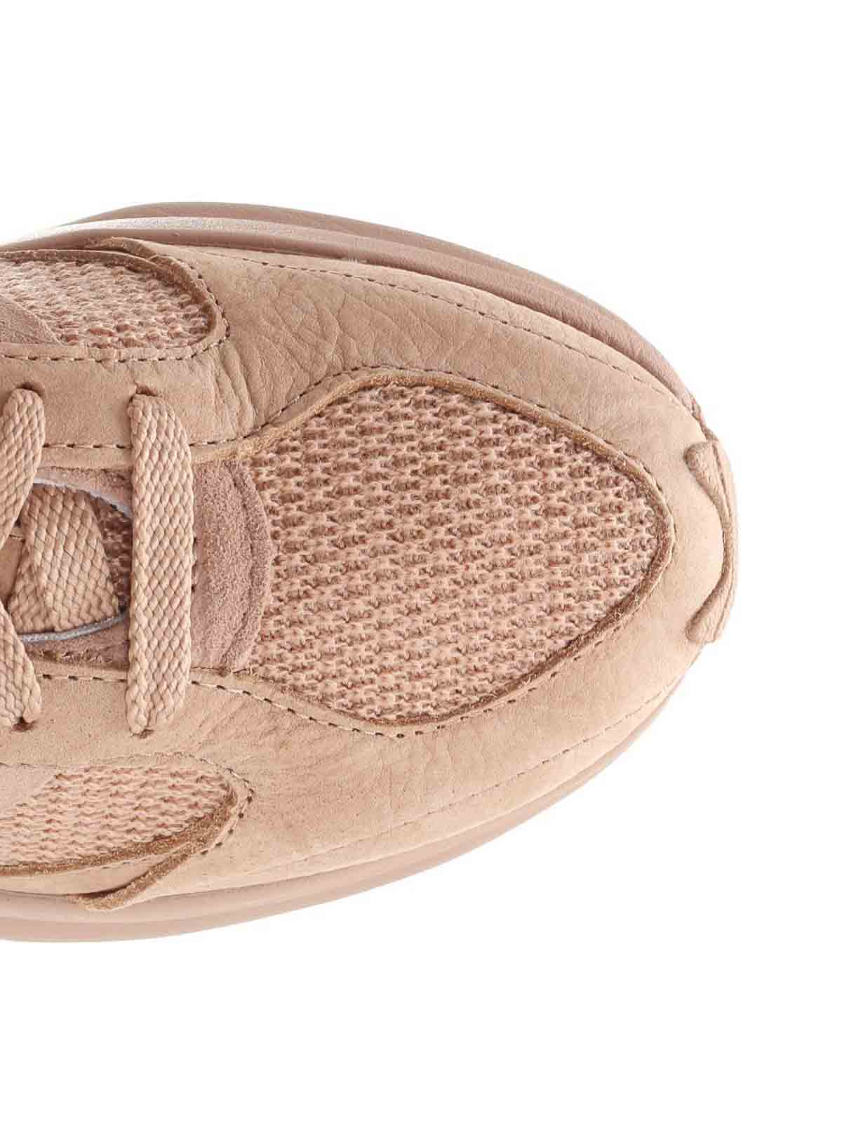wrpd running shoes in pink mesh and suede from new balance. please refer to the us men's size conversion.