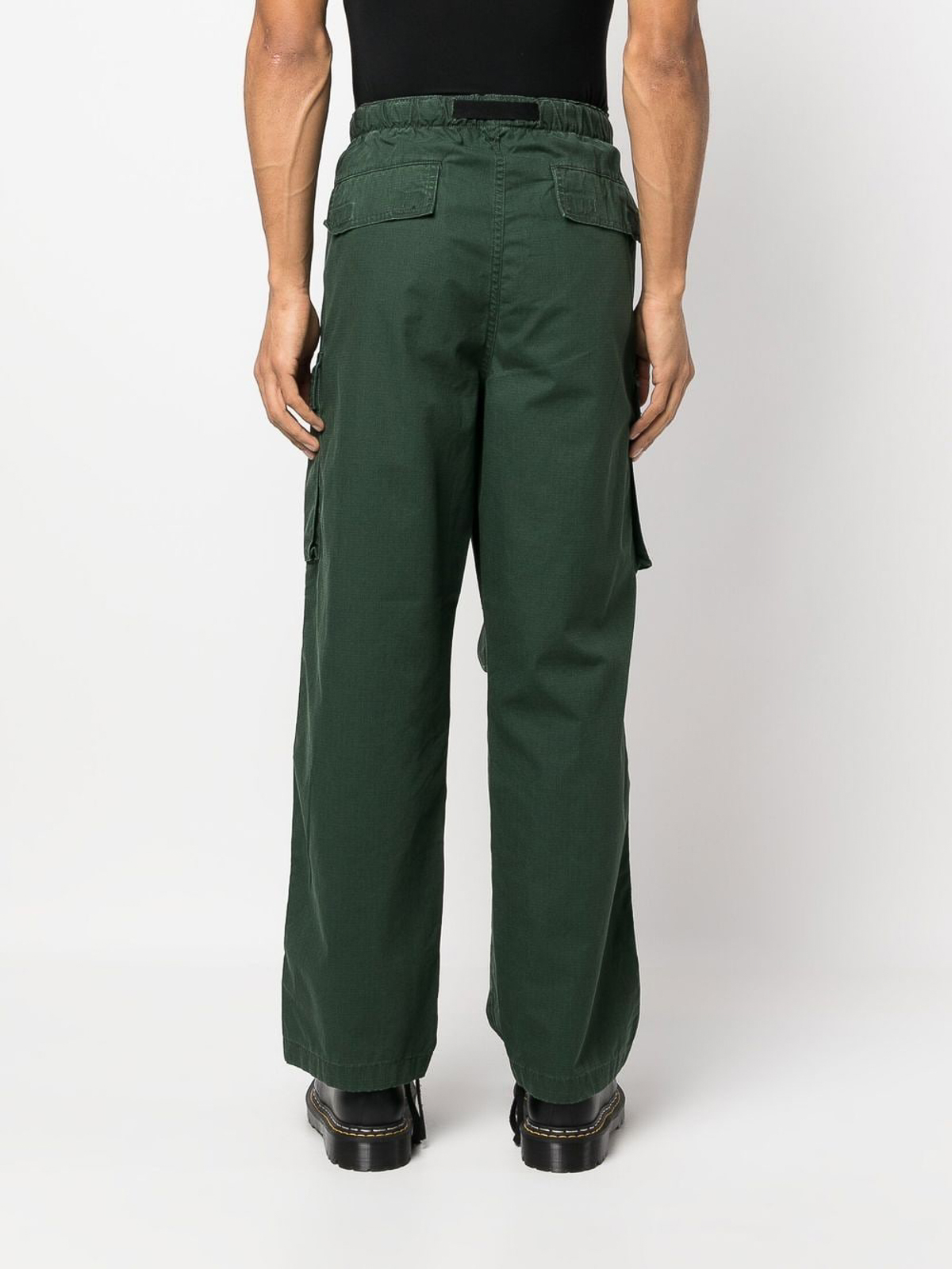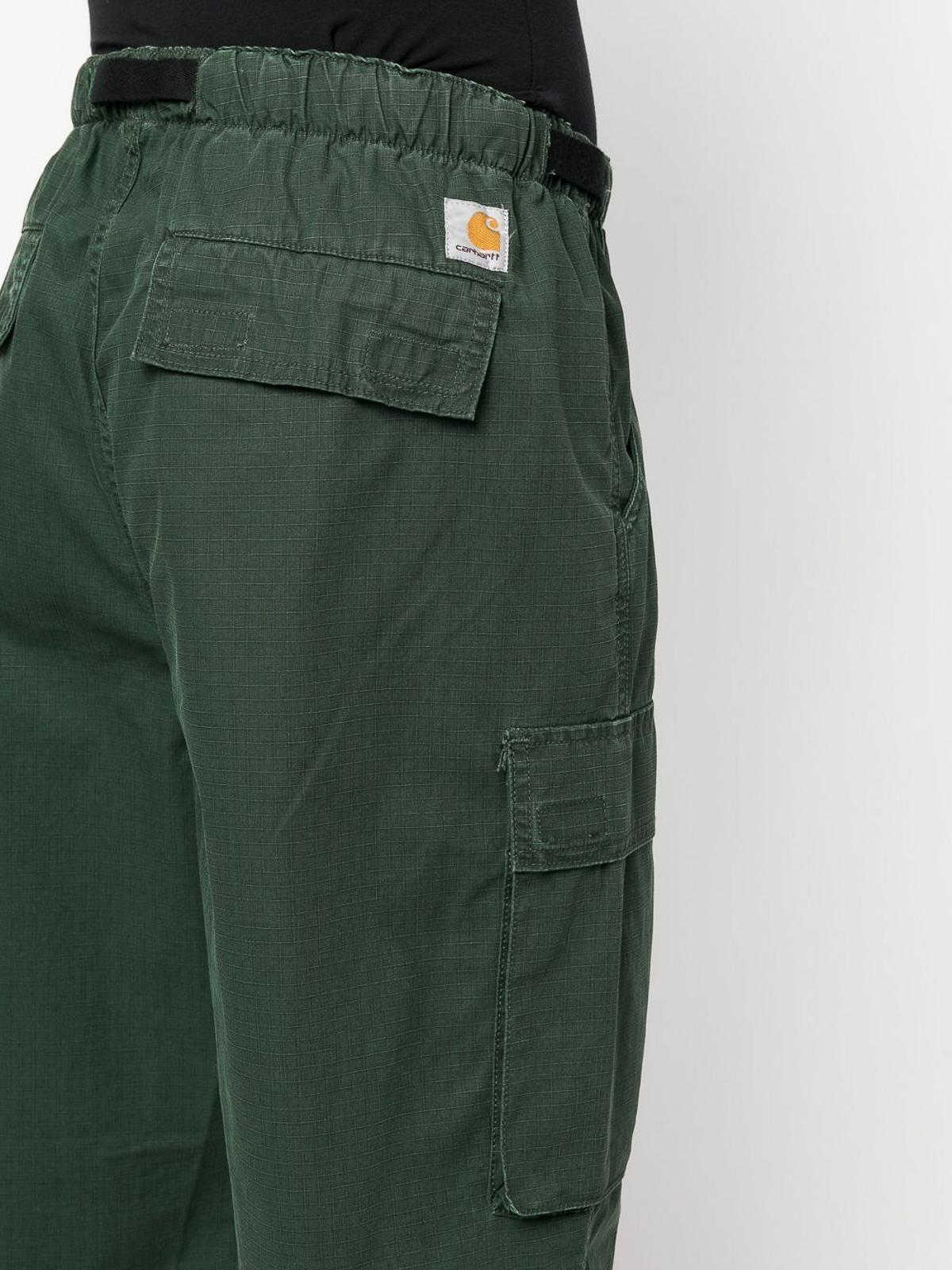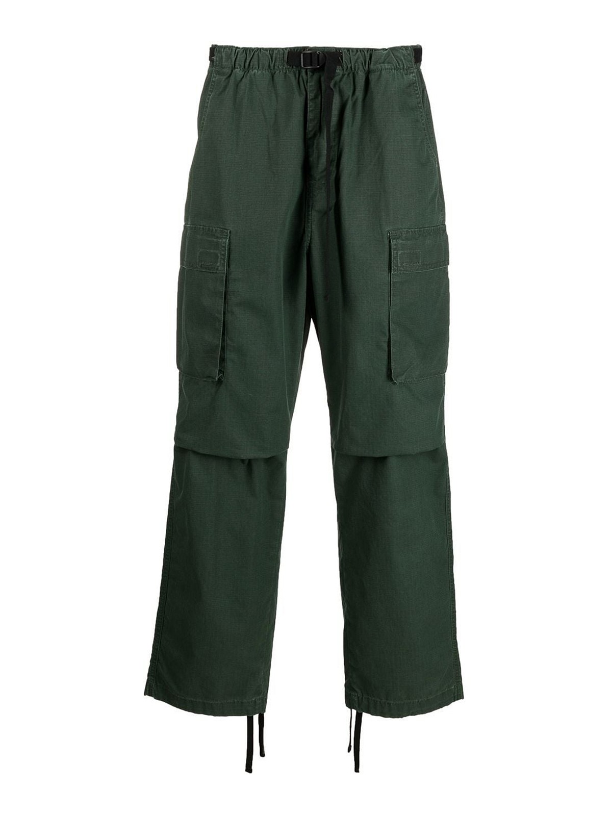 Cotton cargo trousers from carhartt wip featuring dark green cotton logo patch to the rear elasticated waistband wide leg two side cargo pockets and two rear flap pockets