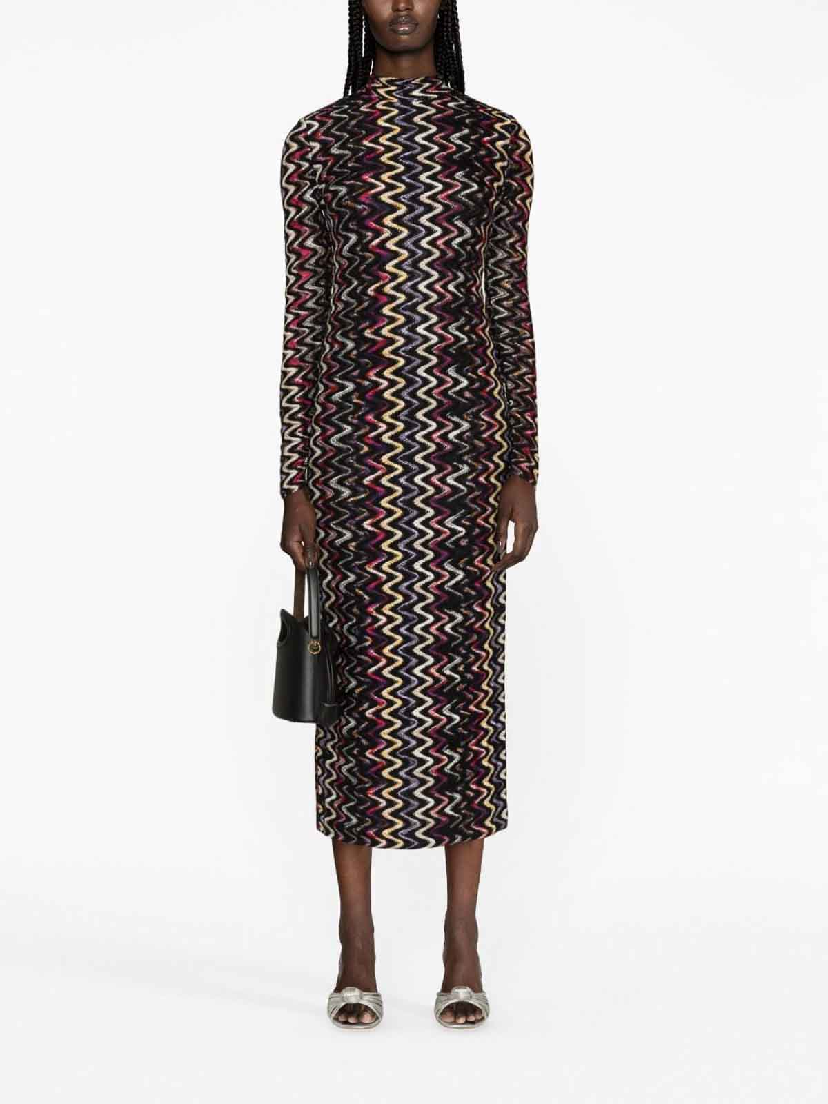 Zigzag-pattern maxi dress from missoni featuring black / multicolour blend signature zigzag woven design high neck concealed rear zip long sleeves straight hem and ankle-length the item you receive may differ slightly from the item photographed this is due to the artisanal nature with which all missoni products are constructed