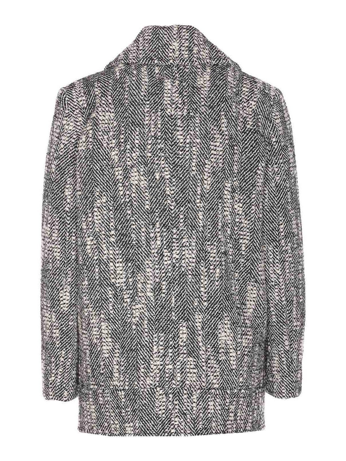 Abrigo Patrizia pepe con botones de doble botonadura blanco y negro, hombro reforzado, manga larga, bolsillos, motivo de chevron, hombro reforzado