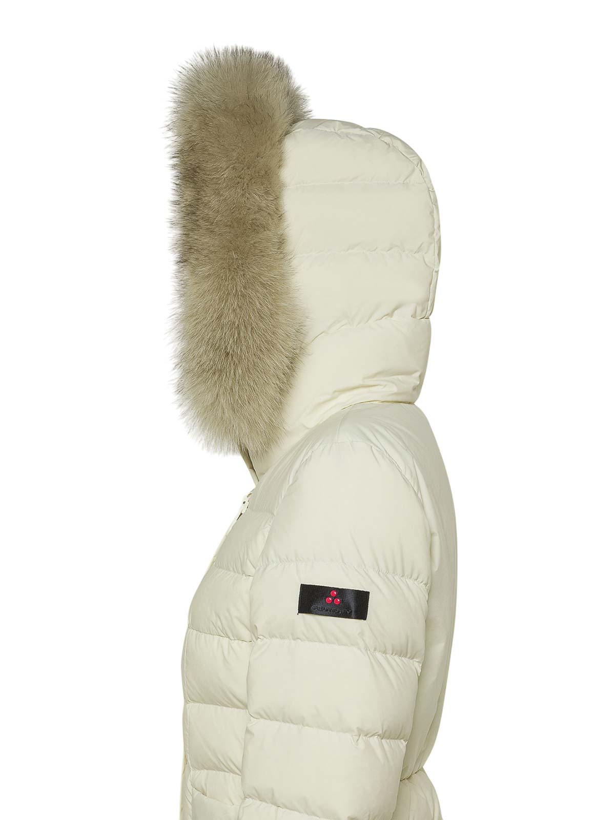 Chaqueta de plumas Peuterey Turmalet ML 06 para mujer en popelina de nailon y microfibra con pelo/chaqueta corta peuterey de corte ajustado hecha de popelina ligera de nailon y microfibra de poliéster, procesada a alta temperatura para obtener una sensación de apoyo y un efecto polvoriento, suavizada aún más con un tratamiento de silicona. El acolchado certificado de canal de plumón natural garantiza calidez, ligereza y comodidad, mientras que la capucha con ribete extraíble de piel de zorro añade un toque elegante y refinado. El diseño femenino adornado por la cremallera central asimétrica, el cuello con doble botón a presión tono sobre tono y los bolsillos laterales con cierre a presión oculto. El tratamiento hidrófugo protege de los elementos y garantiza comodidad y protección durante la estación fría. Capucha con ribete de piel de zorro extraíble, popelina de nailon y microfibra de poliéster cuello asimétrico de tela con cierre completo de cremallera y doble cierre bolsillos laterales con botones y cierre a presión oculto, acolchado de plumón natural, tratamiento hidrófugo, longitud corta, corte ajustado, cuidado del producto: lavado delicado, máximo 30 °C, no tratar con cloro, secar en secadora a baja temperatura, planchar como máximo 110 °C, no limpiar en seco, secar en plano a la sombra Composición: tejido principal: 70% poliamida, 30% poliéster Forro: 100% poliéster, acolchado: 80% plumón, 20% plumas, poder 650, piel: piel de zorro auténtica
