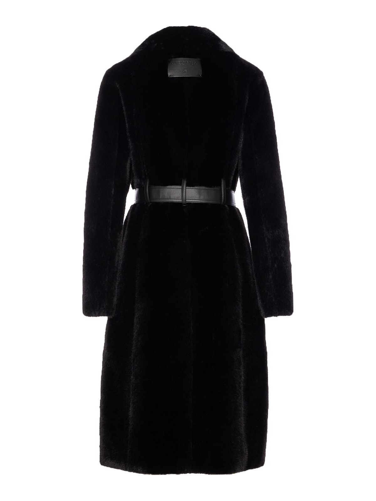Abrigo sintético negro Patrizia pepe con botones, cuello sintético, bolsillos laterales, cinturón sintético, manga larga, nombre del color del diseñador: negro