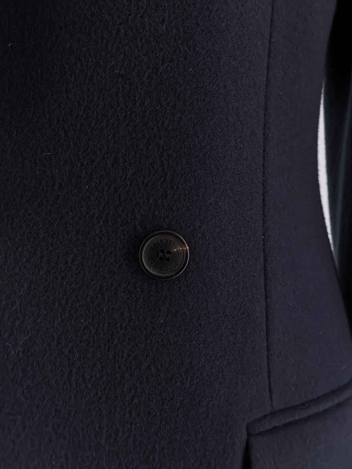Solapa de pico, cierre con botones cruzados, dos bolsillos forrados con solapa en la parte delantera dobladillo acampanado Hecho en Italia Forro 100% lana: 100% cupro