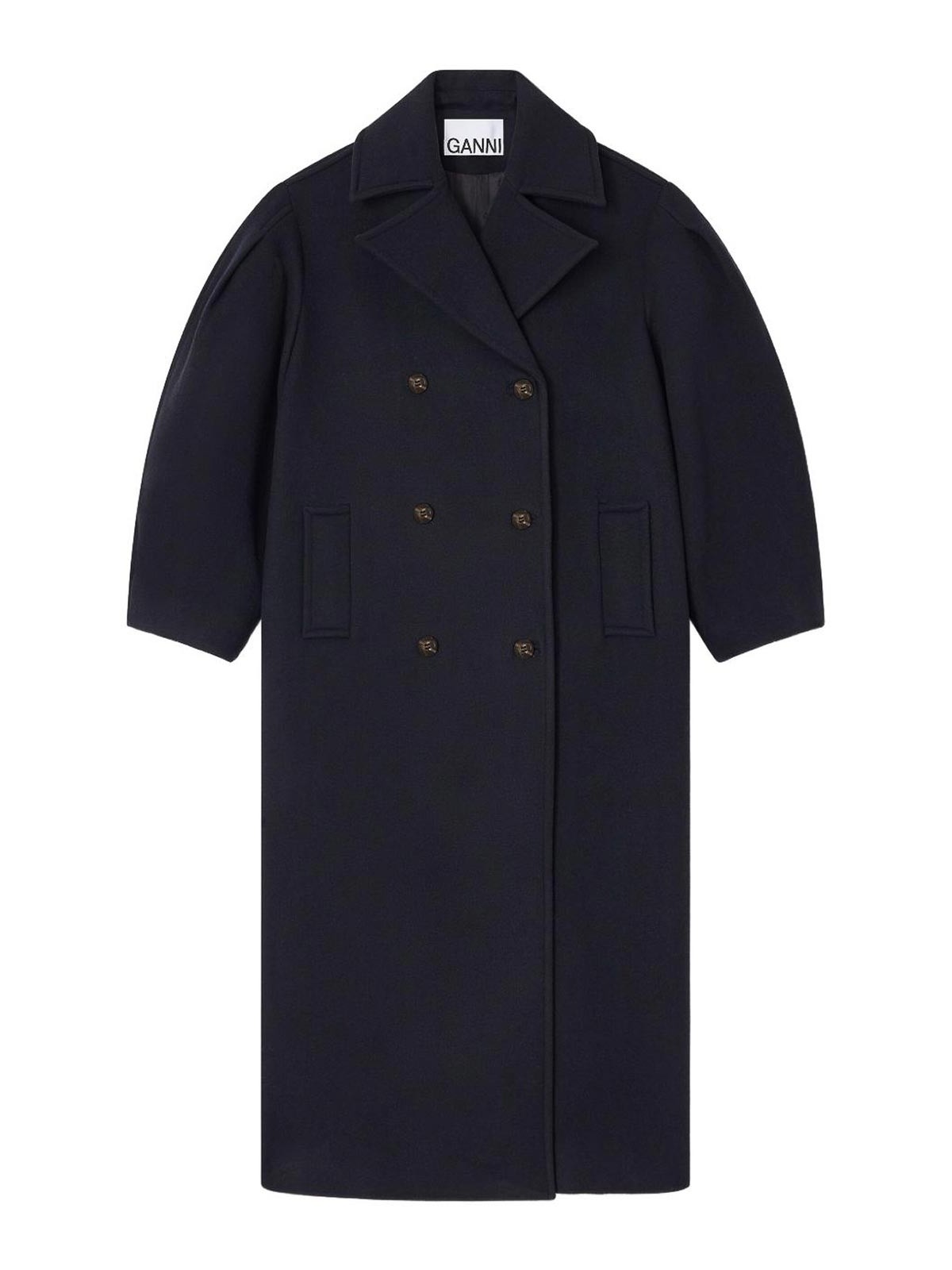 GANNI: Abrigos semilargos - Abrigo Midi - Azul