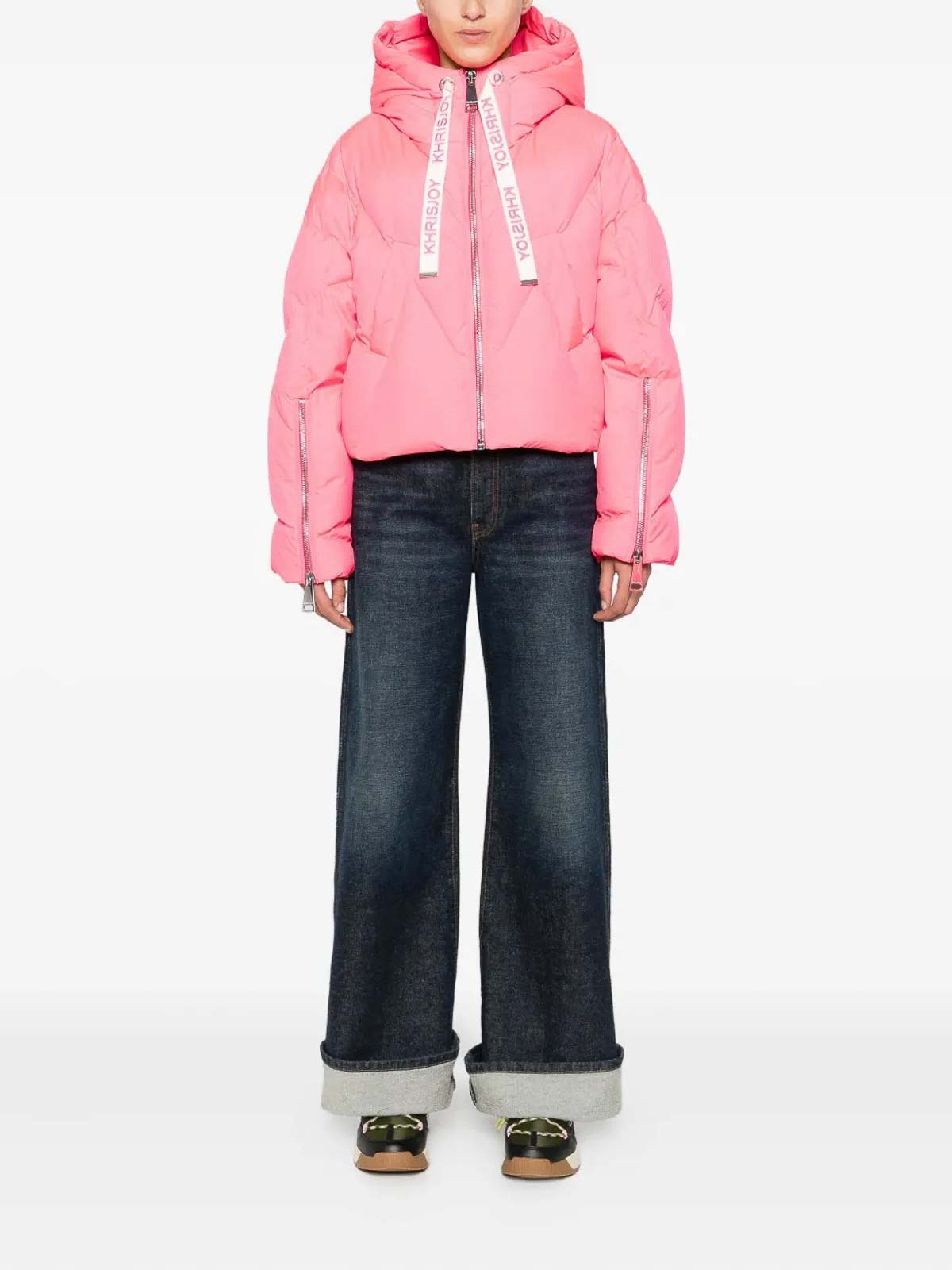 Abrigo acolchado con capucha y cremallera exterior de ganso, talla italiana