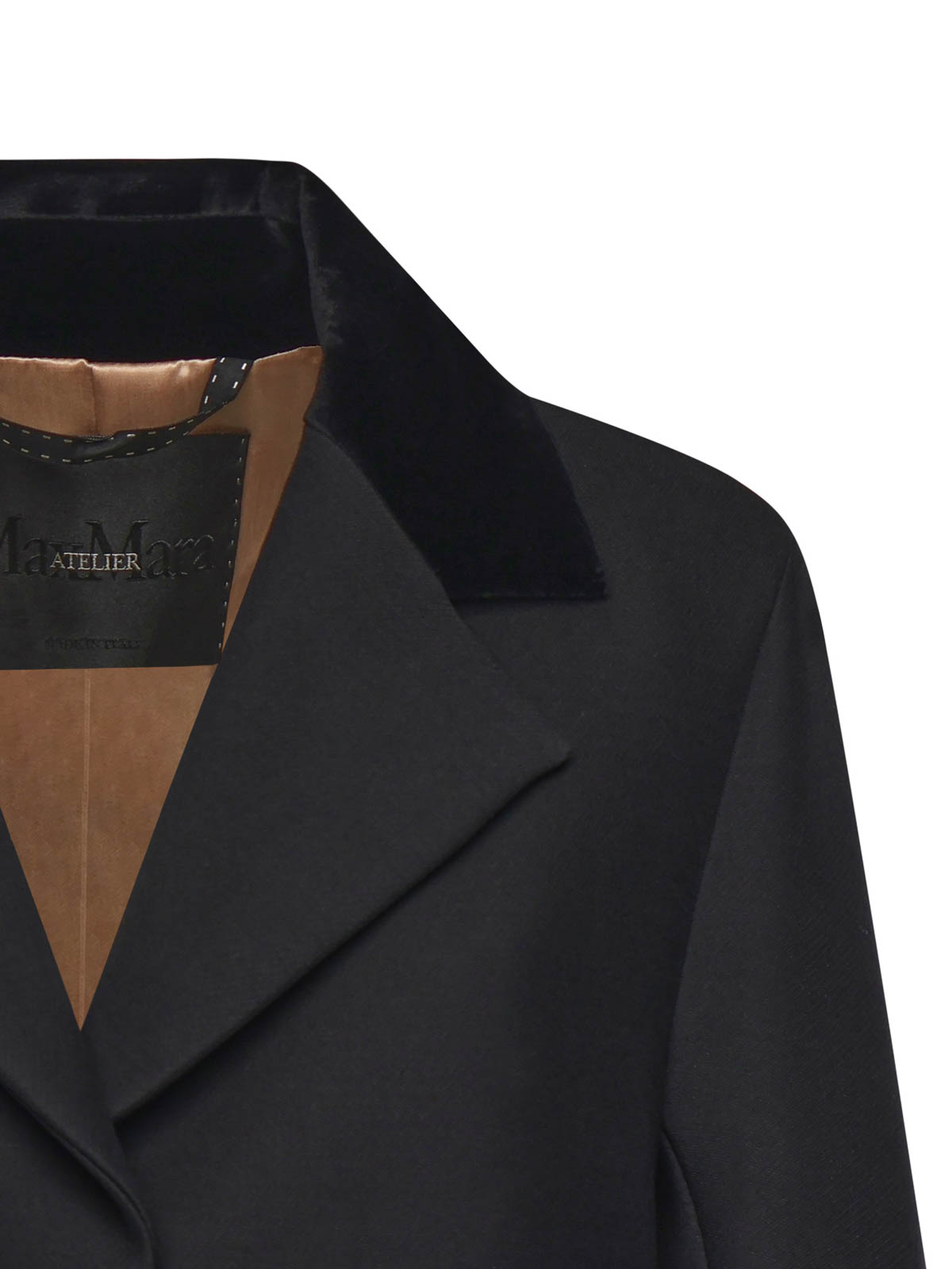 cuello de terciopelo liso, dos bolsillos frontales, bolsillo interior, corte regular, forrado, fabricado en Italia, el tamaño que se muestra en la foto es 40, color: negro