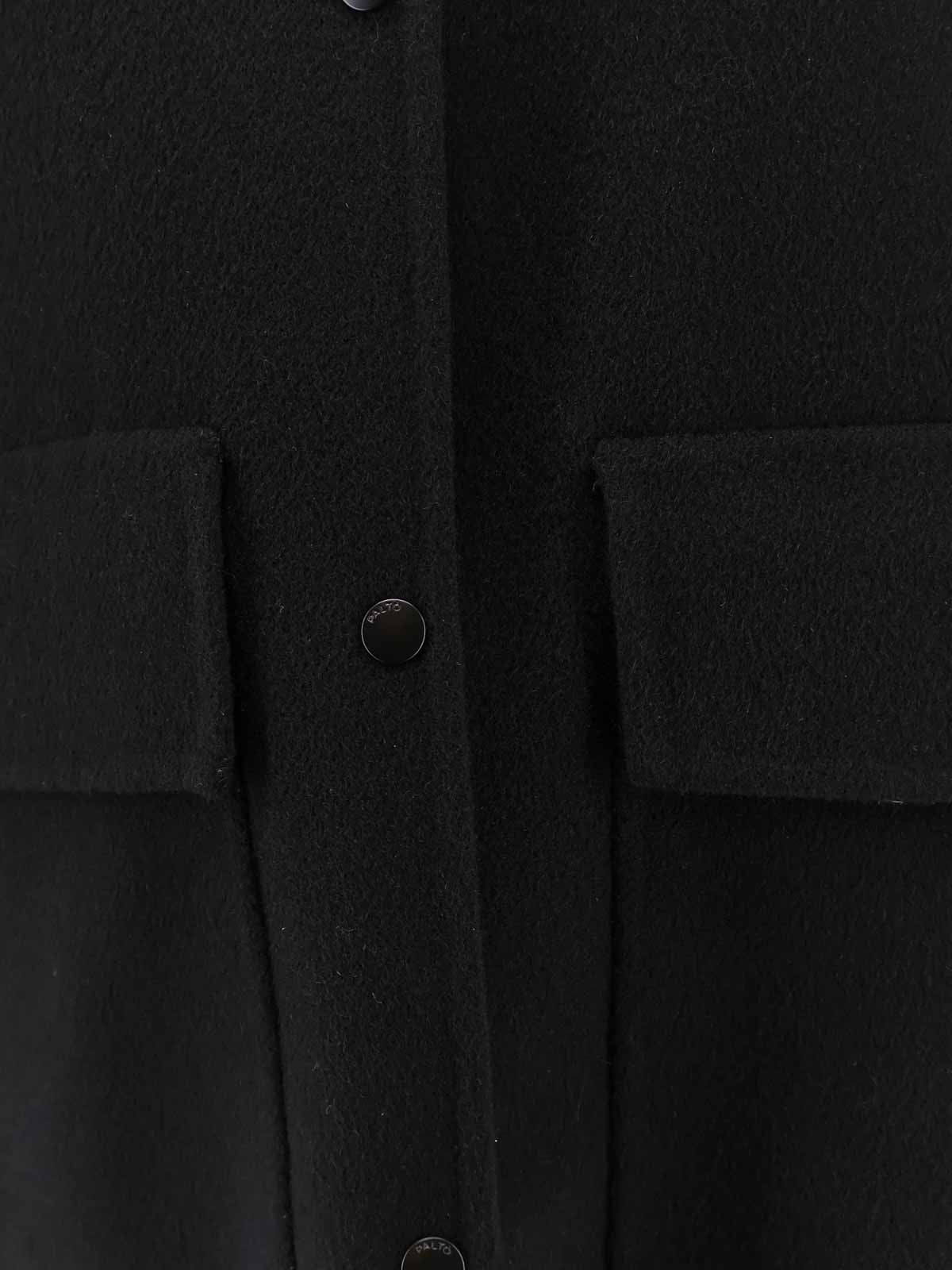 Cierre con botones a presión, cuello puntiagudo, dos bolsillos con solapa en la parte delantera, fabricado en Italia, 100% lana