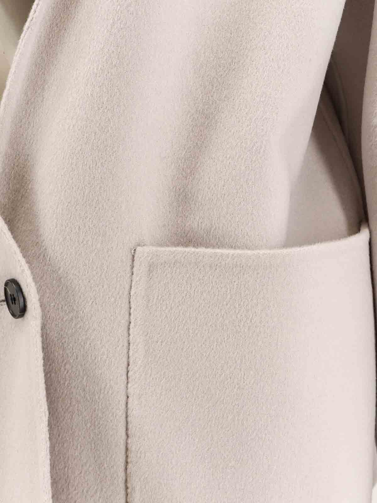 Cierre con un solo botón, cuello en V con pañuelo de lana, bolsillos de parche en la parte delantera, sin forro, fabricado en Italia, 100% lana