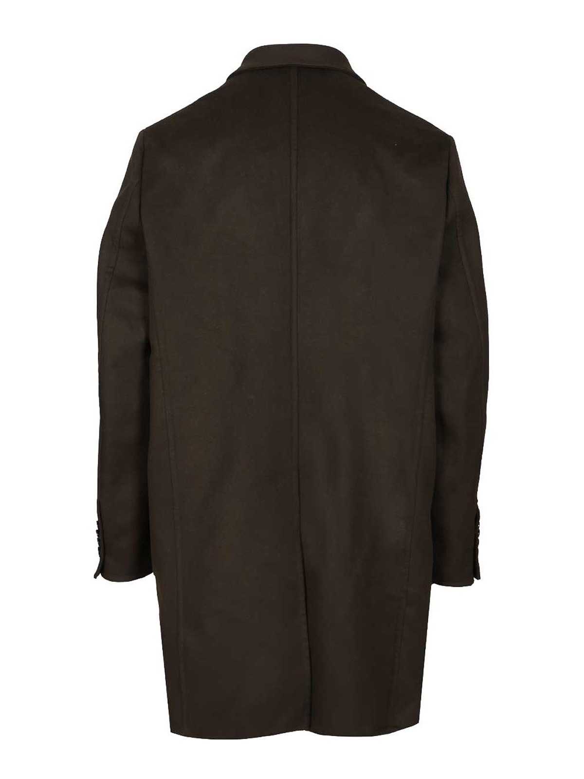 Abrigo de lana y cachemir, solapas con muescas, ribete de grogrén en el interior del escote, cierre con botones, puños abotonados, un bolsillo en el pecho, dos bolsillos con solapa en la parte delantera, forro de satén.