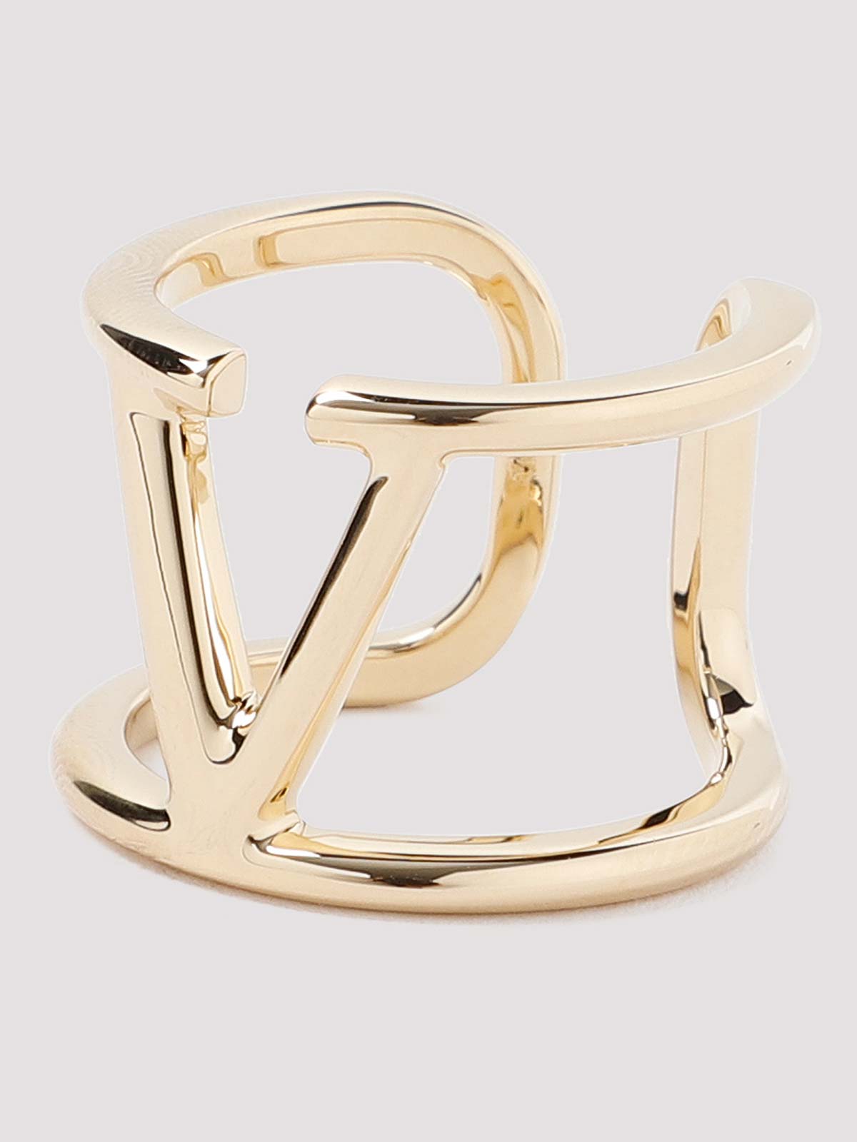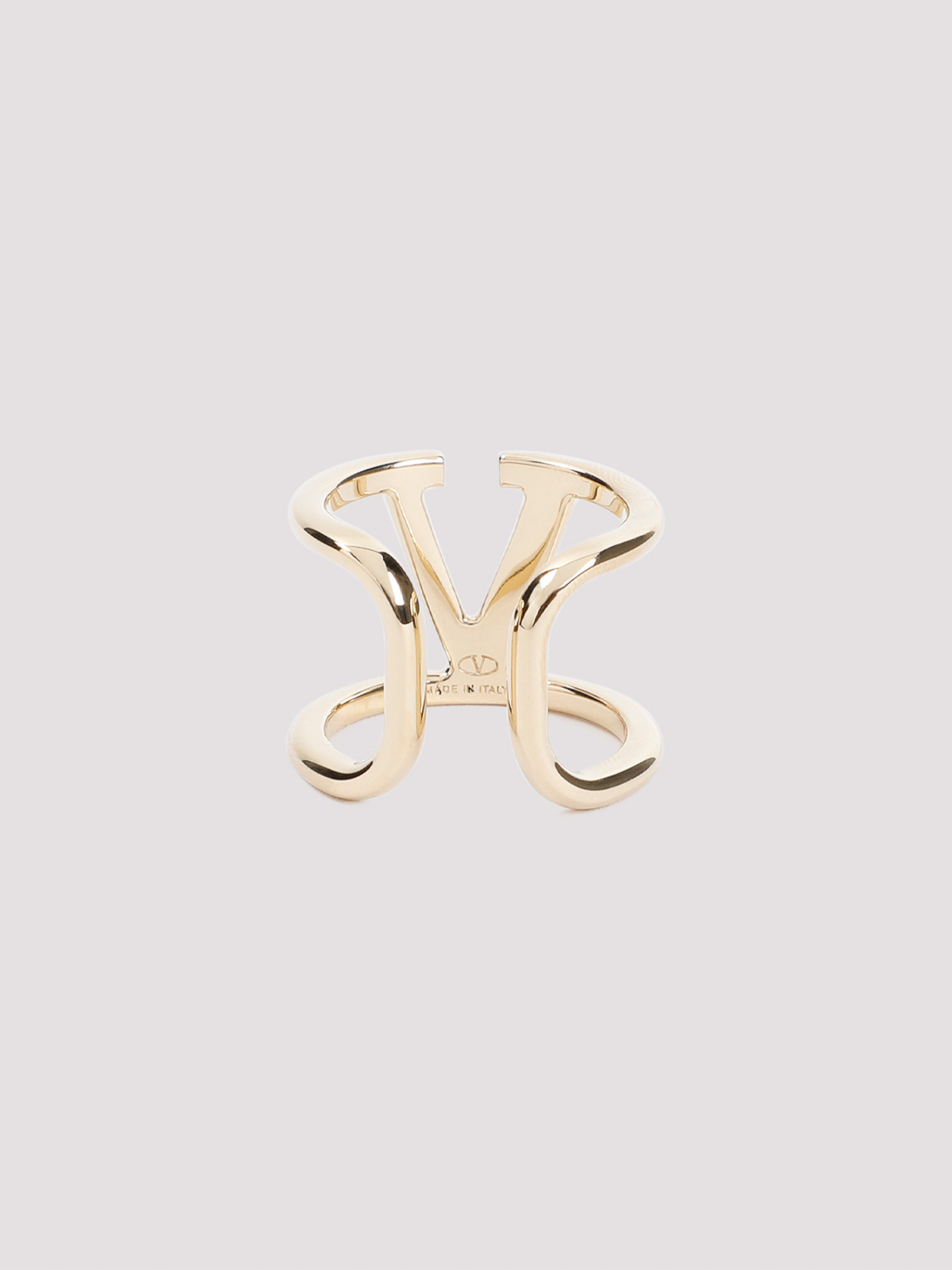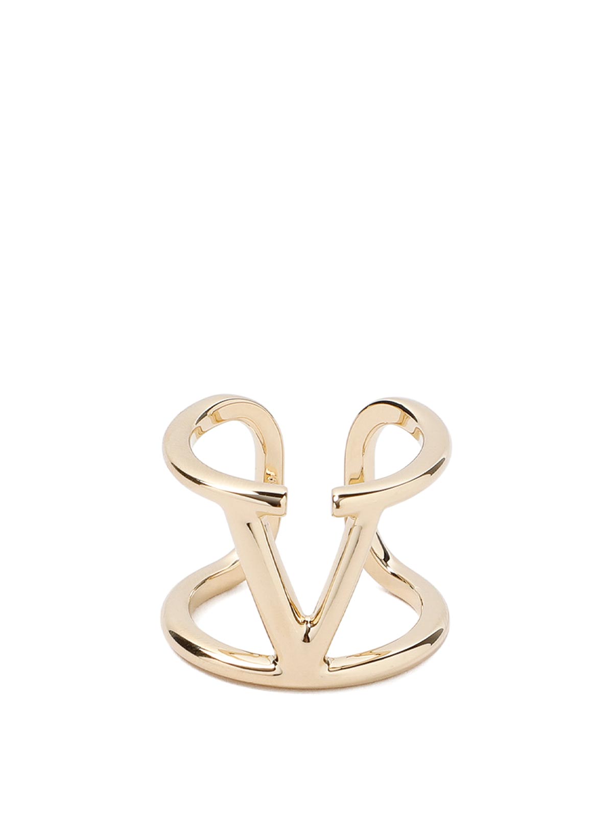 Anillo de latón dorado Valentino Garavani. Latón dorado, construcción rígida, con forma de logotipo en V.