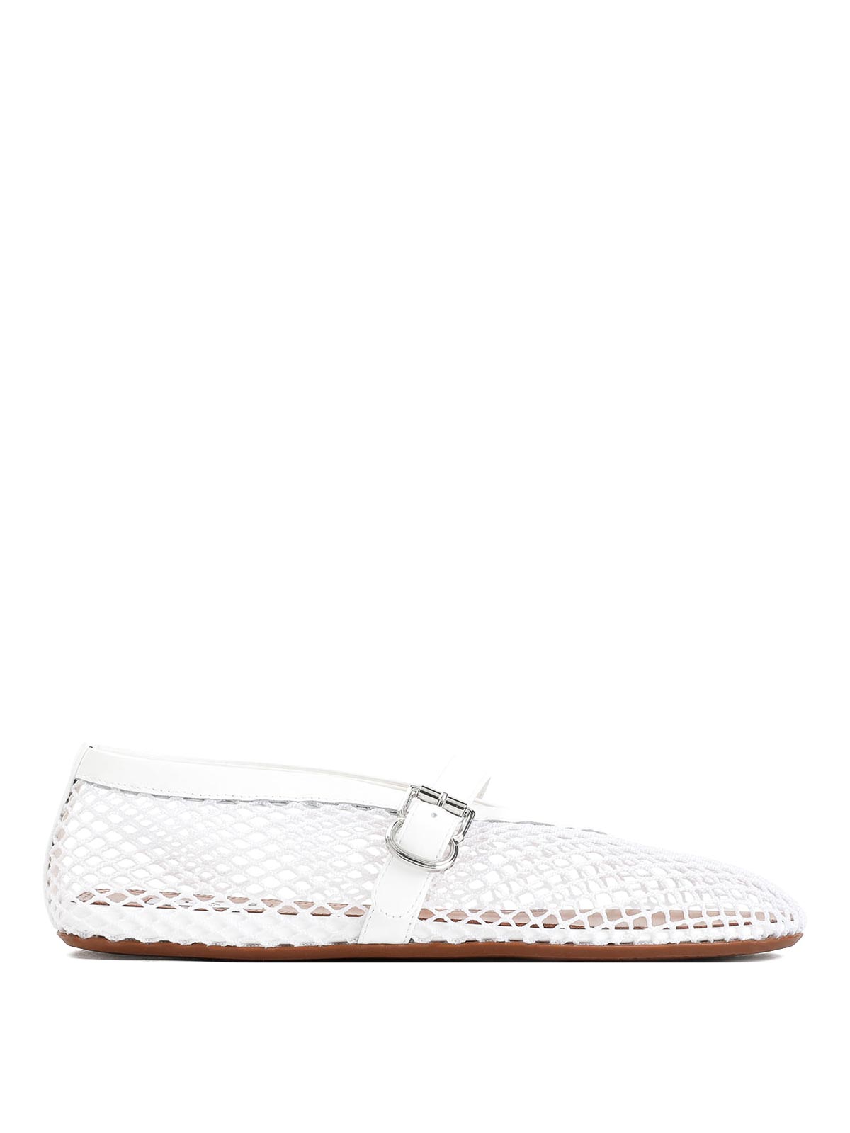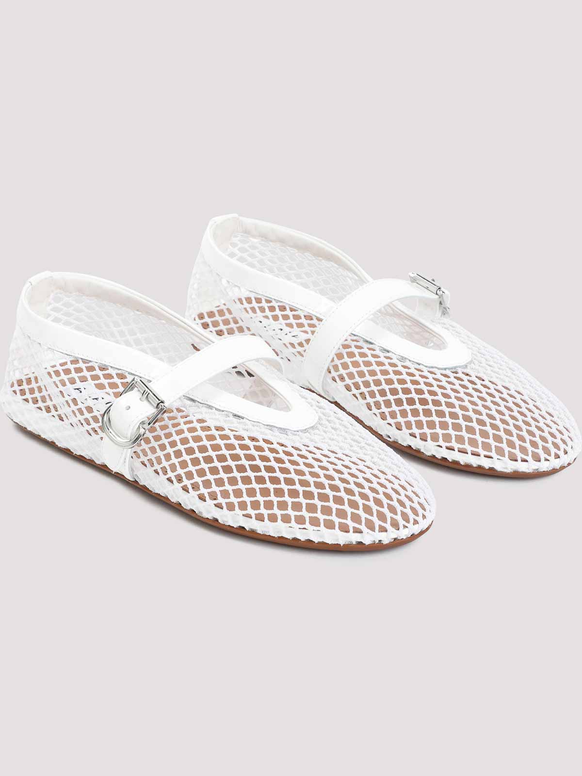 Bailarinas blancas de malla plana Alaa. Parte superior de piel blanca, diseño de malla, suela vienne estampada, correa de piel con cierre de hebilla, puntera almendrada, corte regular.