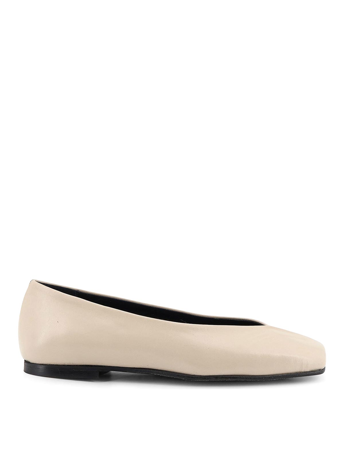 Puntera cuadrada, sin cordones, detalle recortado, suela de piel, piel.