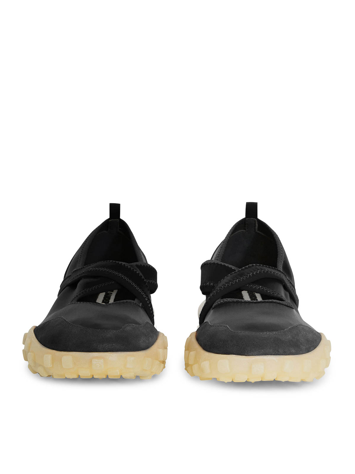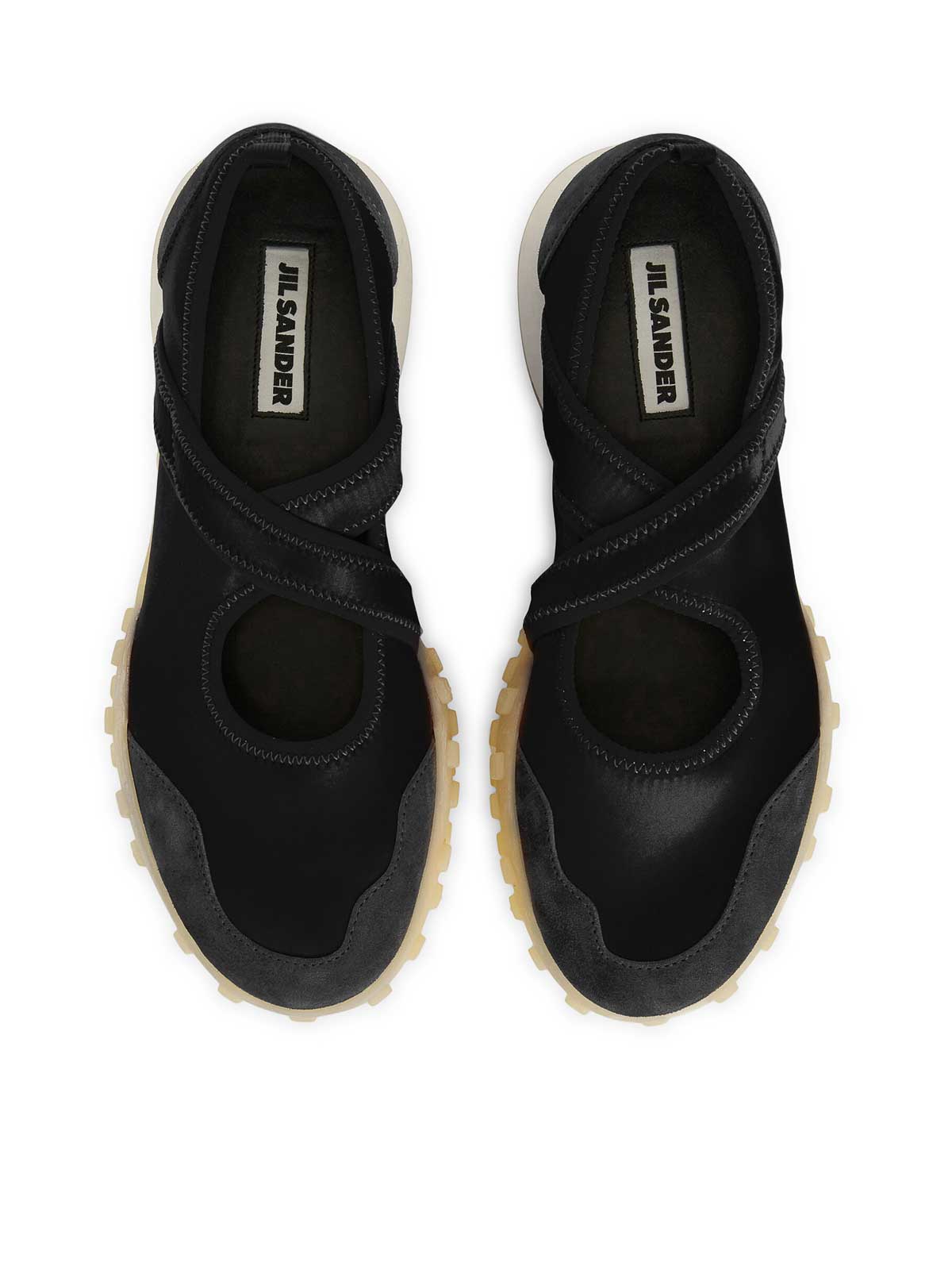 punta redonda, tirantes cruzados, estilo sin cordones, parte superior de satén elástico con ribete de gamuza, plantilla de piel, suela de goma con tachuelas de goma, logotipo de jil sander en relieve, logotipo de jil sander en relieve en la lengüeta trasera, plantilla con el logotipo de jil sander, color: negro
