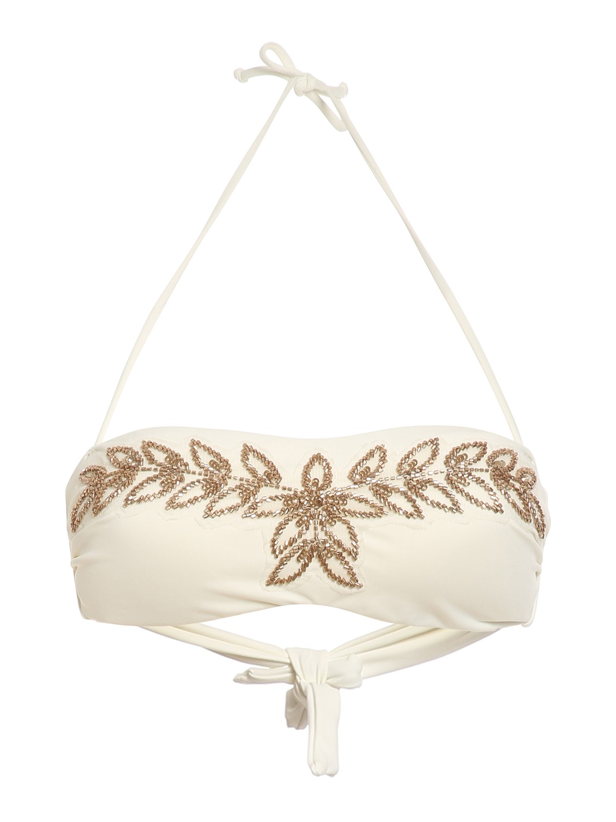 Top de bikini bandeau con cuentas doradas.