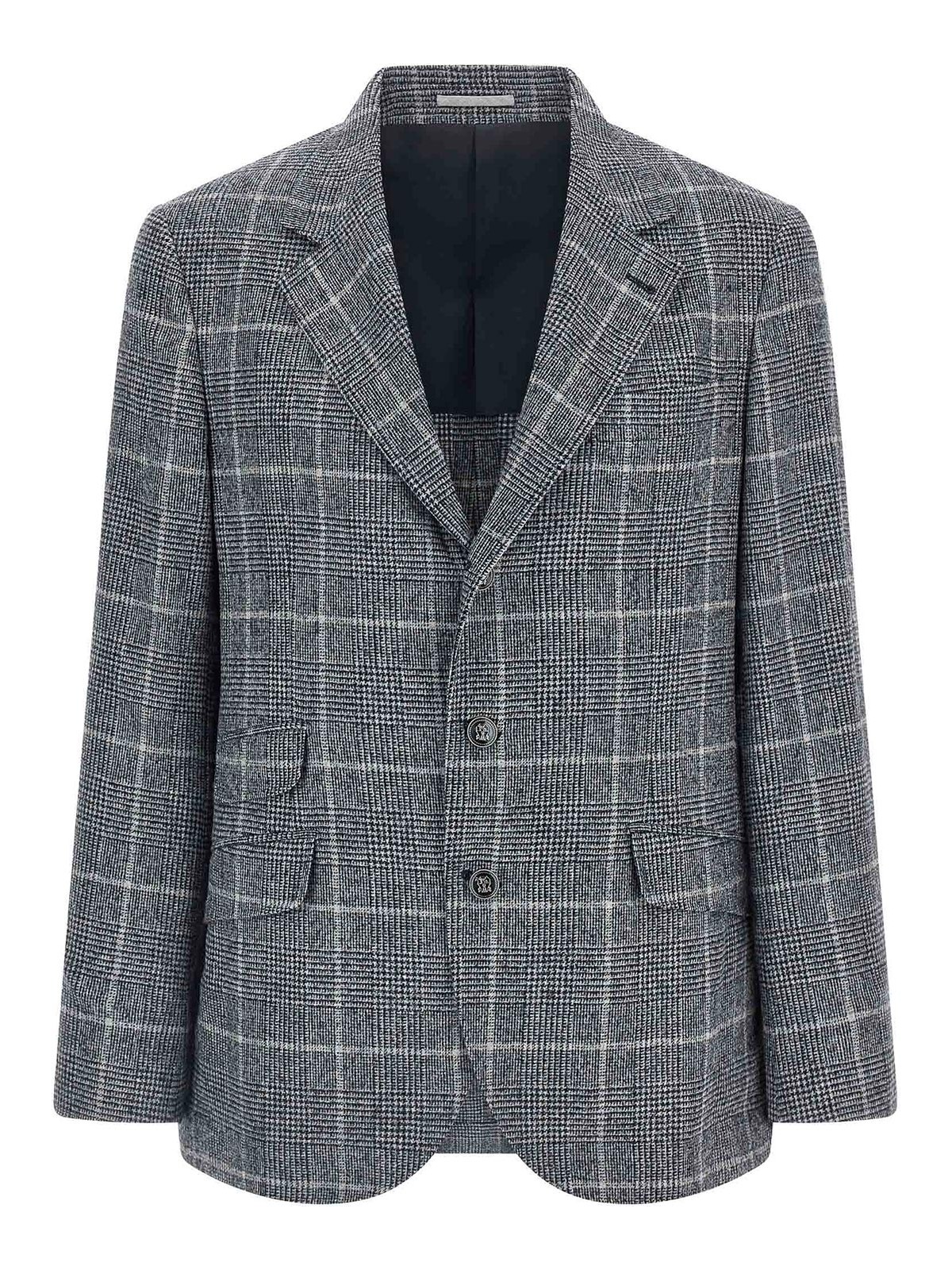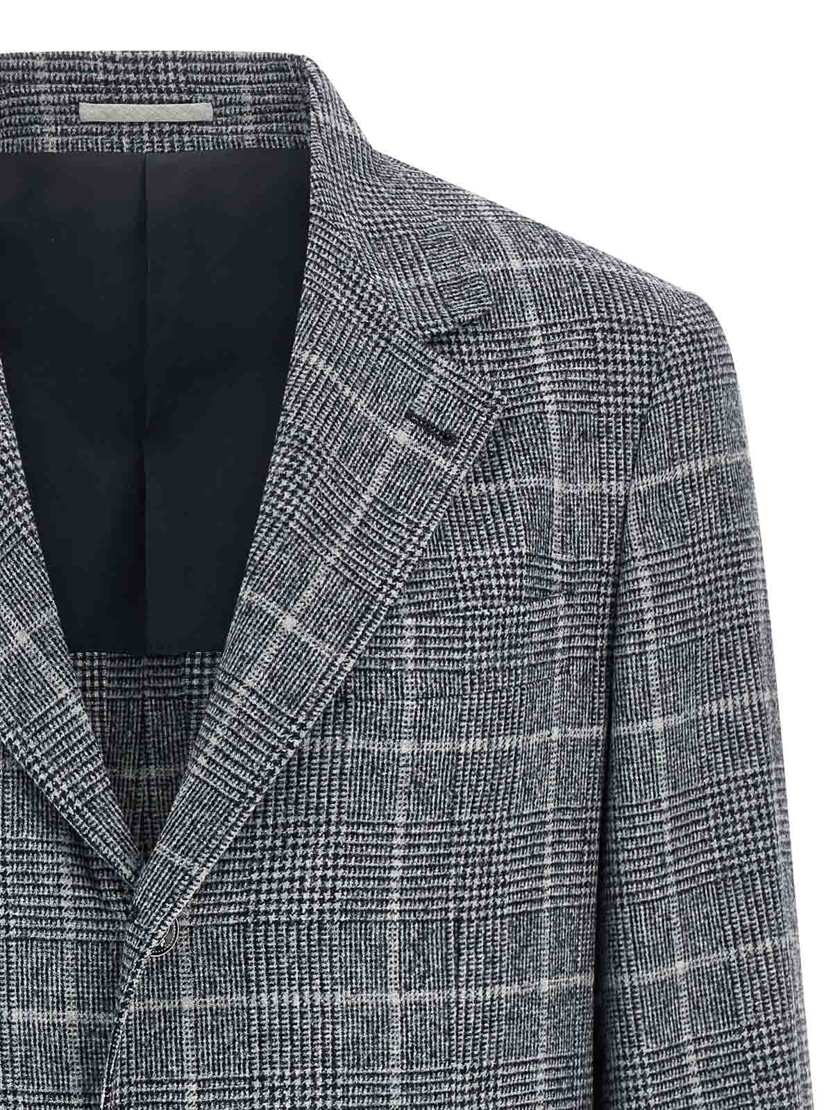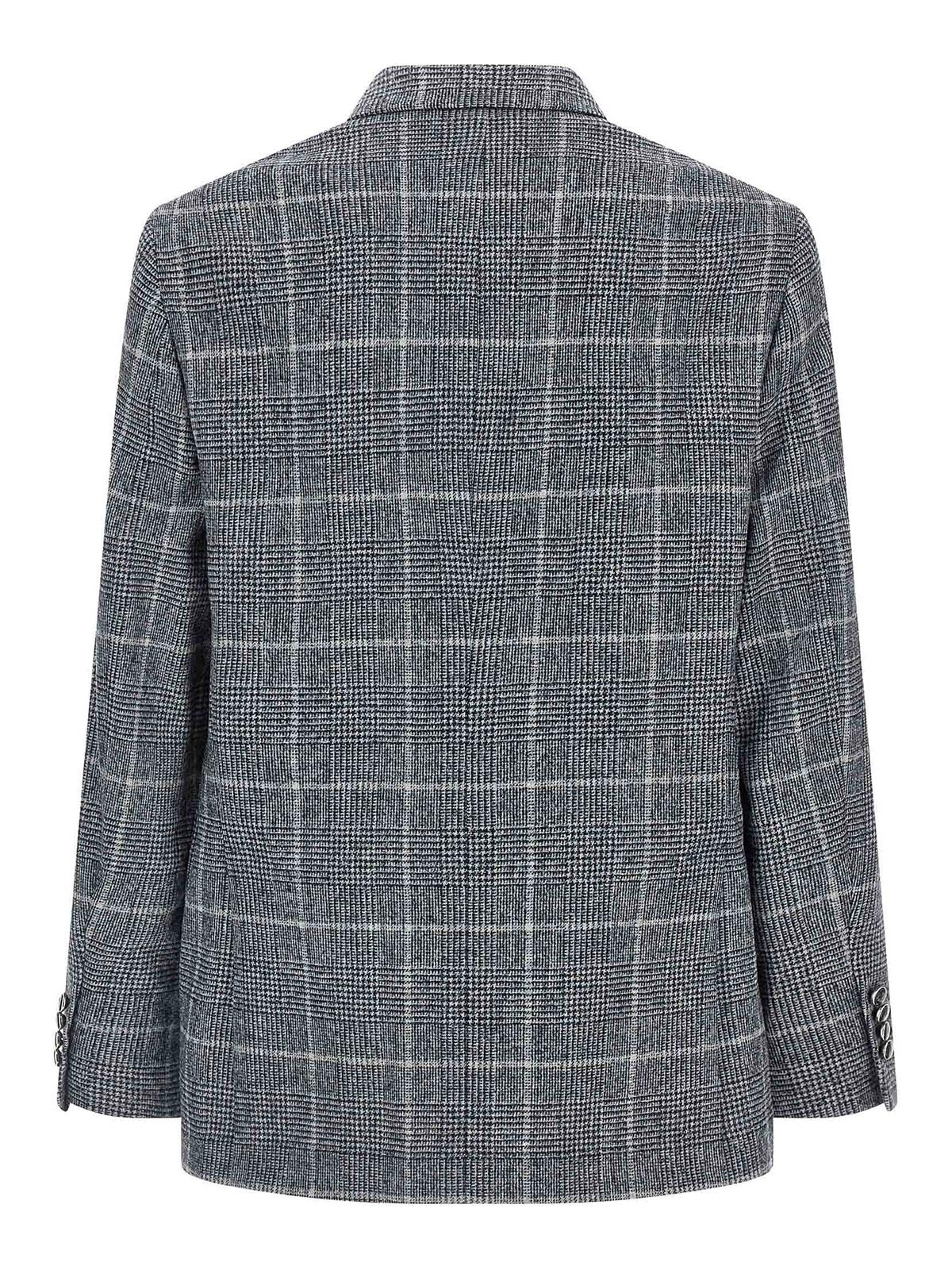blazer cavallo' príncipe de Gales de alpaca y lana con efecto degradado, modelo deconstruido de un solo pecho con cierre de dos botones en metal biplanchado, solapas espejadas, bolsillos con solapa, bolsillo para billetes y bolsillo en el pecho, dos bolsillos interiores con cierre de botones y bolsillo para bolígrafos, «spalla solomeo», puños con abertura en forma de ojal, medio forro de cupro, aberturas en la parte trasera.