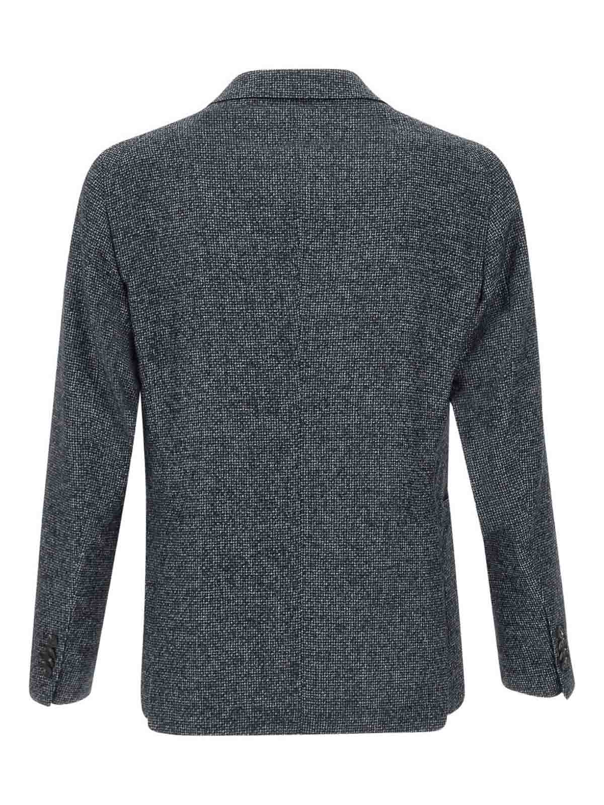 Origen: Italia, características del azul, textura en relieve, solapas estrechas, cierre con botones, bolsillos frontales, aberturas laterales, composición: lana 56%, poliamida 27%, acrílico 17%